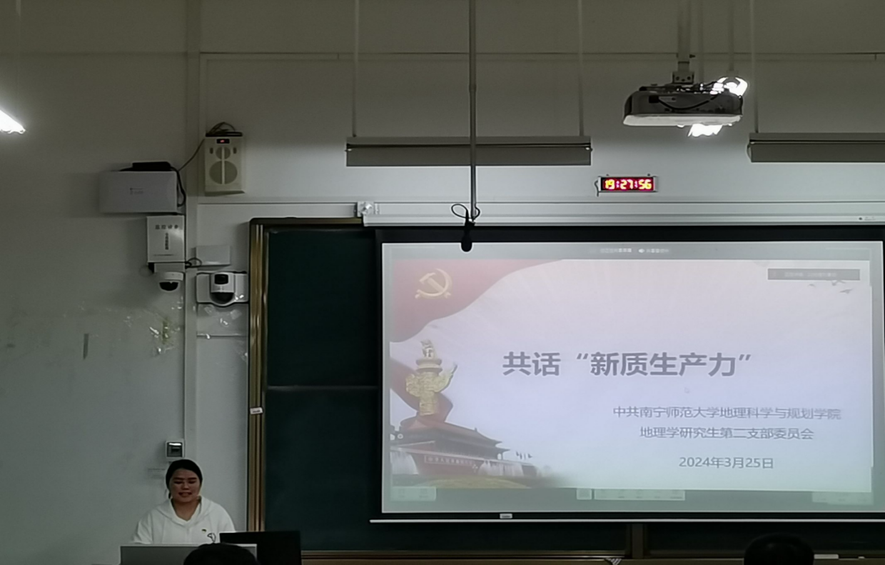 3月25日,地理科学与规划学院地理学研究生第二党支部在武鸣校区一号教学楼117教室组织召开“共话新质生产力”为主题的党小组会议,地理学研究生第二党支部全体党员参会。