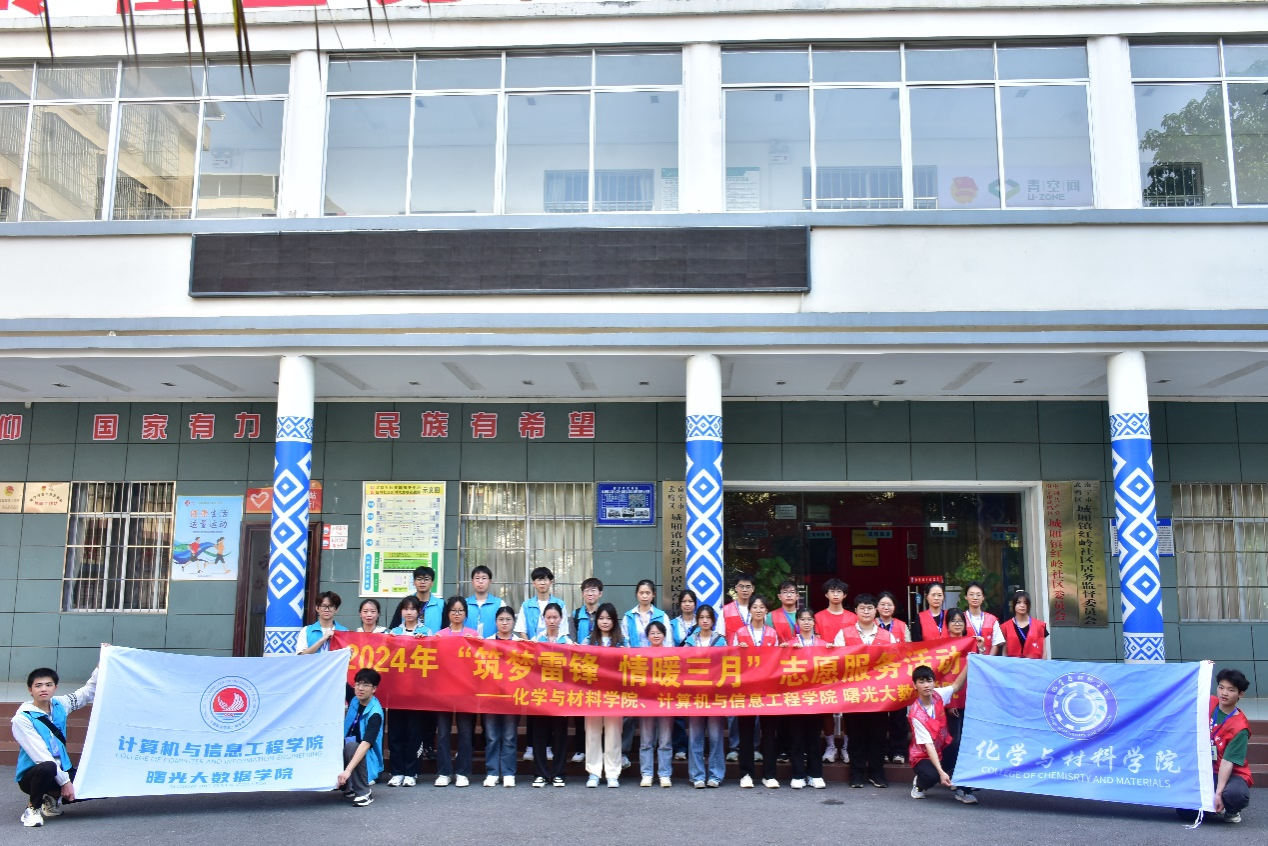 为激发大学生学习雷锋精神的热情,倡导大学生积极投身志愿服务活动中,3月26日下午,计算机与信息工程学院/曙光大数据学院联合化学与材料学院前往武鸣区城厢镇红岭社区,面向武鸣红岭社区的儿童举办了以“筑梦雷锋,情暖三月”为主题的志愿服务活动。