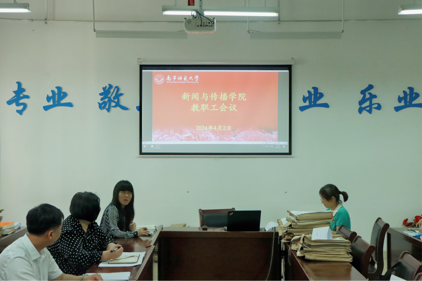 4月2日,新闻与传播学院于理综楼304会议室召开全体教职工会议。学院领导班子和全体教职工参加了此次会议,会议由学院党委副书记、院长陈洪波主持。