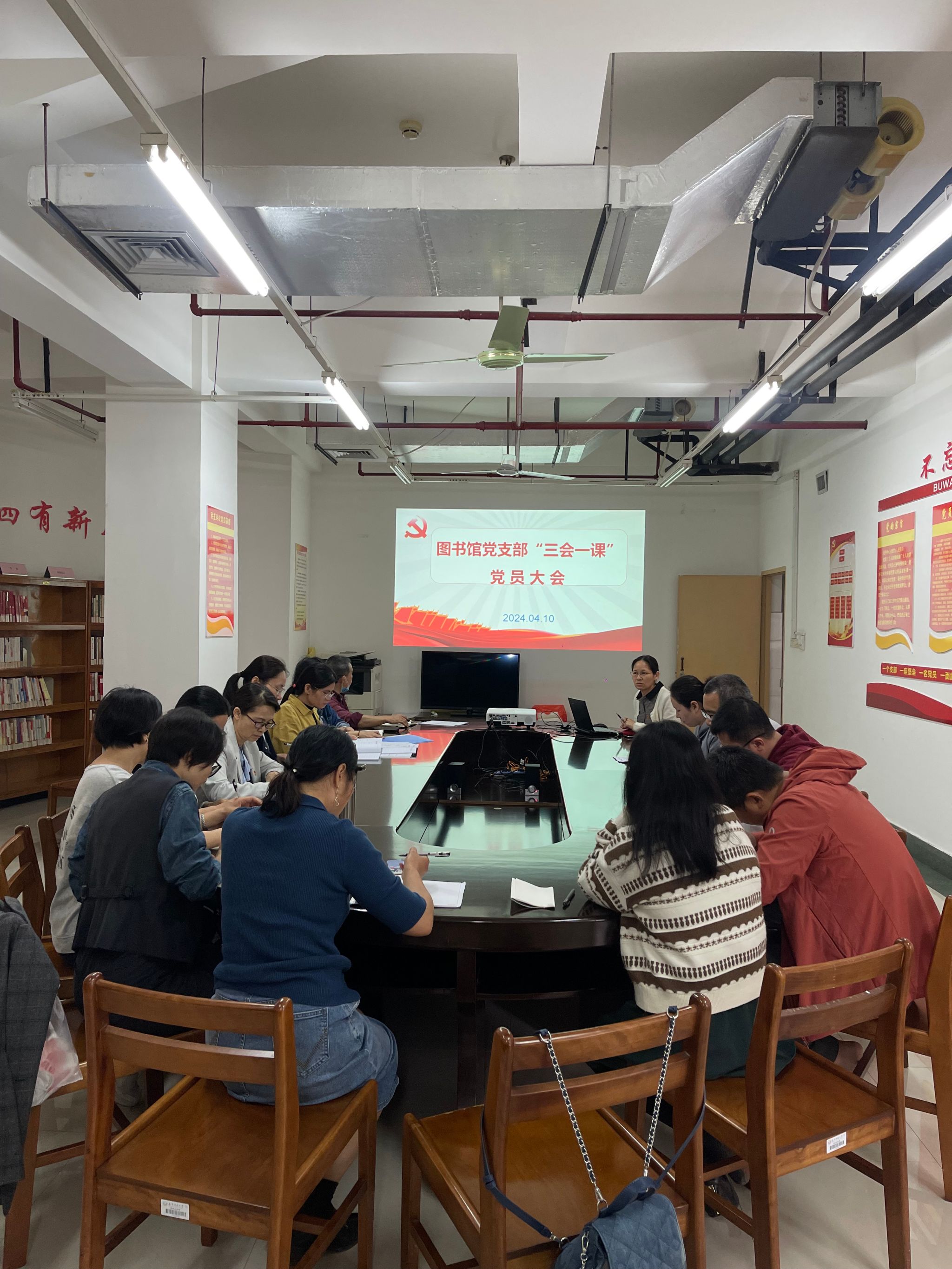 4月10日上午,图书馆党支部在明秀馆11楼党员活动室召开第二季度支部党员大会,开展了“三会一课”党课学习。全体党员及发展对象参加了会议。