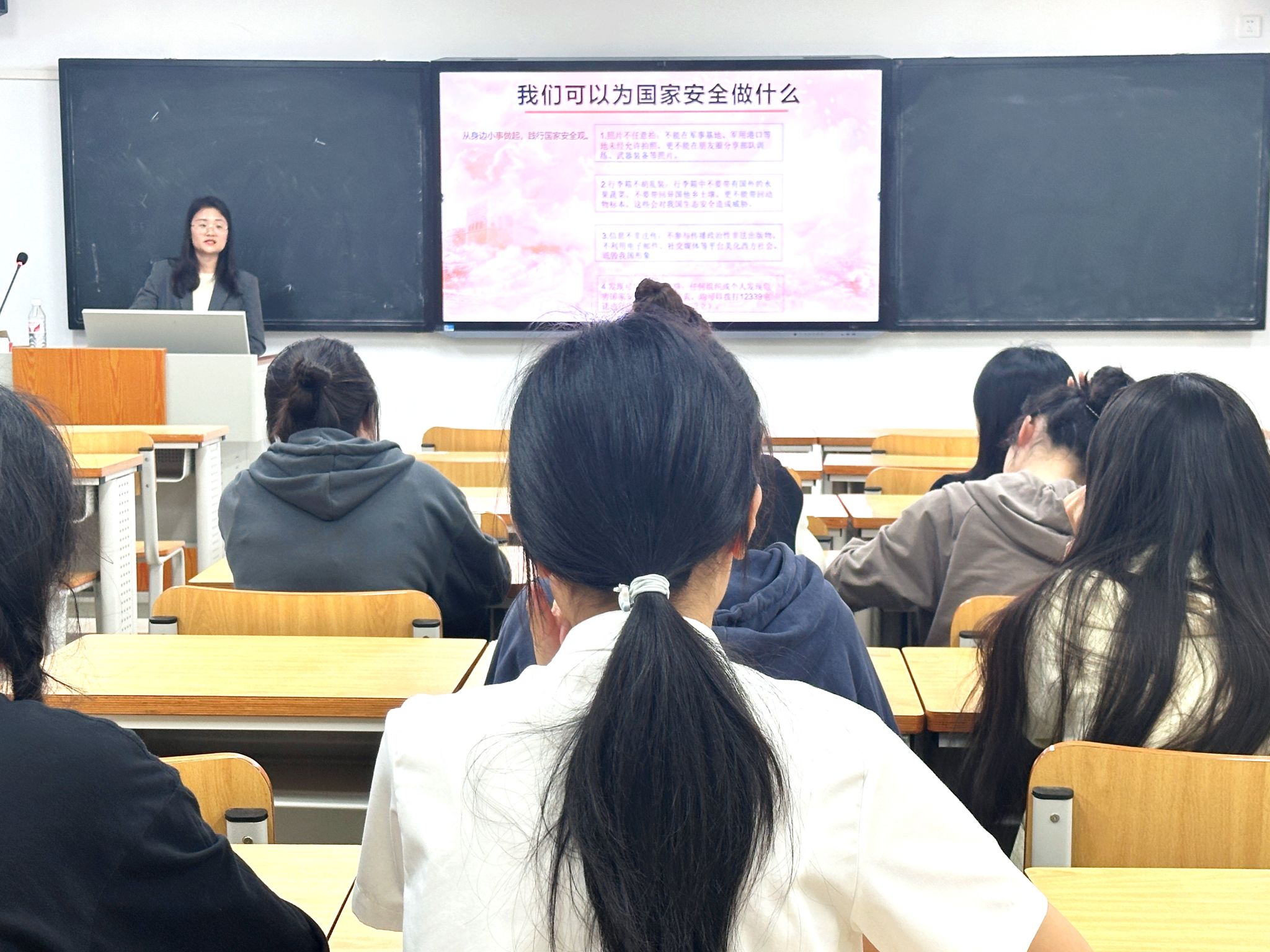 为深入贯彻落实总体国家安全观、推动国家安全宣传教育,在4月15日第九个全民国家安全教育日来临之际,为增强外国语学院学生的国家安全意识,学院负责团委工作的黄慧梅老师于4月9日晚在2号实验楼B104教室对21级日语班团支部开展“以青年担当,守国家安全”的主题团课宣讲活动。