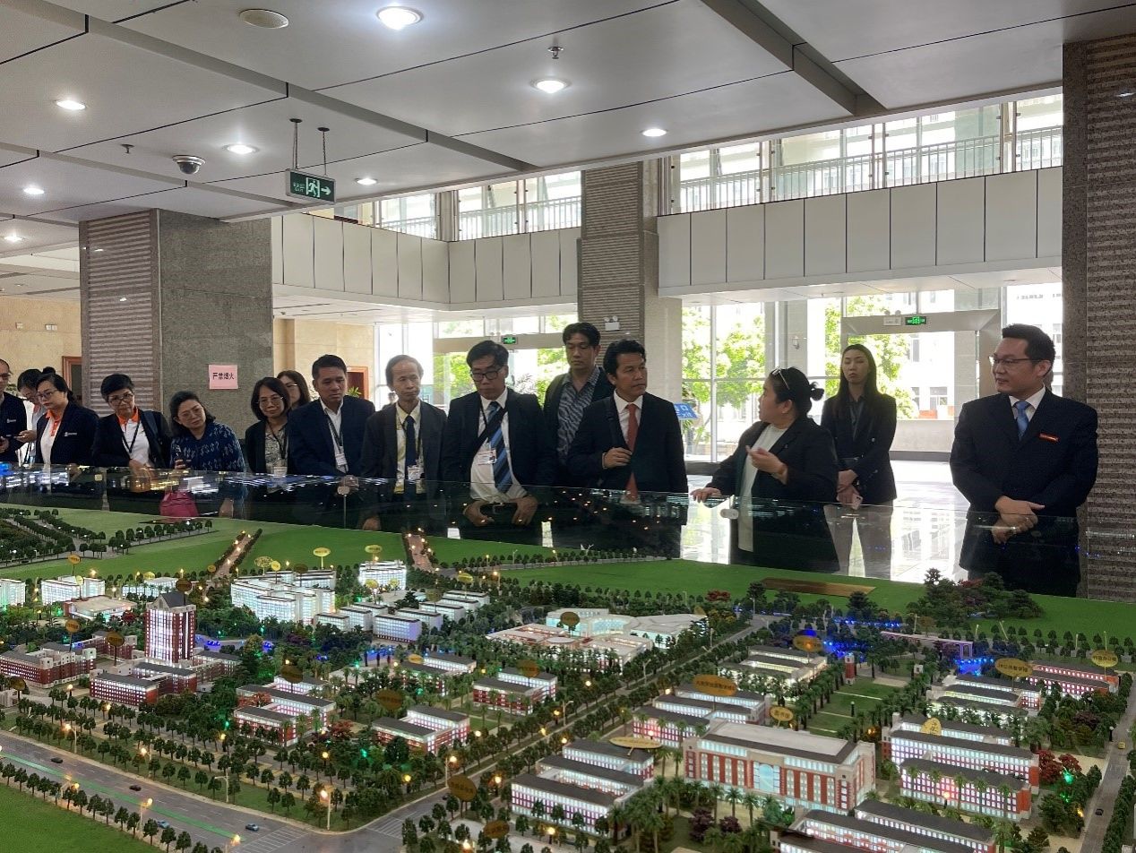 会谈前,代表团一行观摩了完美(中国)沙盘模型及完美(中国)教学成果展厅,与会人员还一同观看了南宁师范大学宣传片。座谈会上,杨绪明处长致欢迎词,他对代表团的来访表示热烈欢迎,介绍了完美(中国)基本情况、近年发展取得的成绩,及与泰国高等教育合作发展情况,希望通过此次会面,加深双方了解,在硕士博士生培养、学术交流、科研合作方面开展广泛合作。