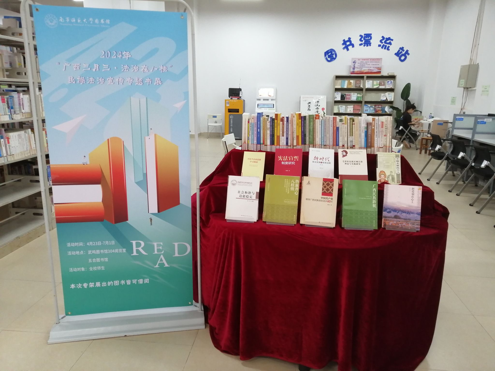 此次专题书展分别在武鸣校区图书馆304图书阅览室和五合校区图书馆布展展出,展出时间将持续到2024年7月1日,欢迎全体师生读者前往参展并积极借阅。