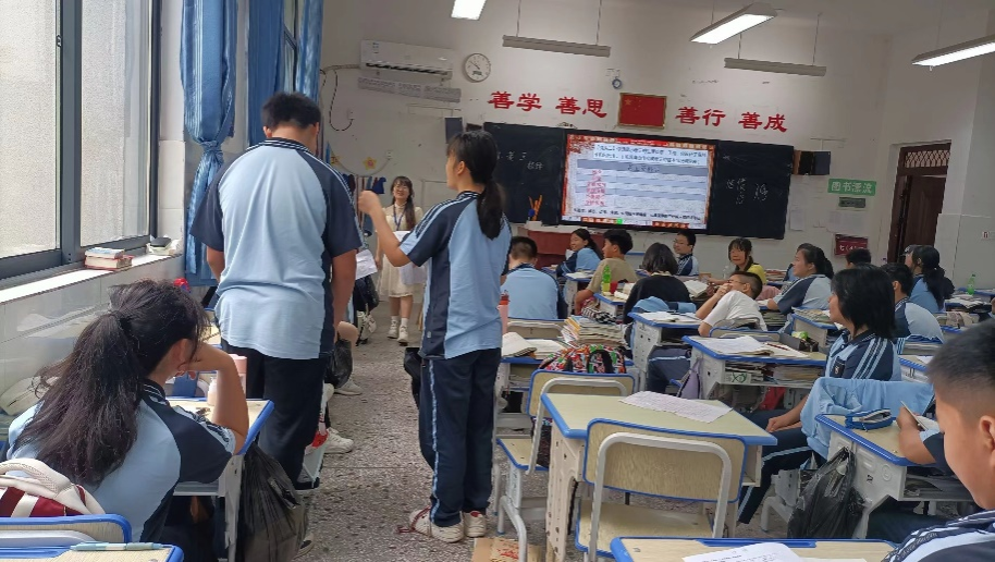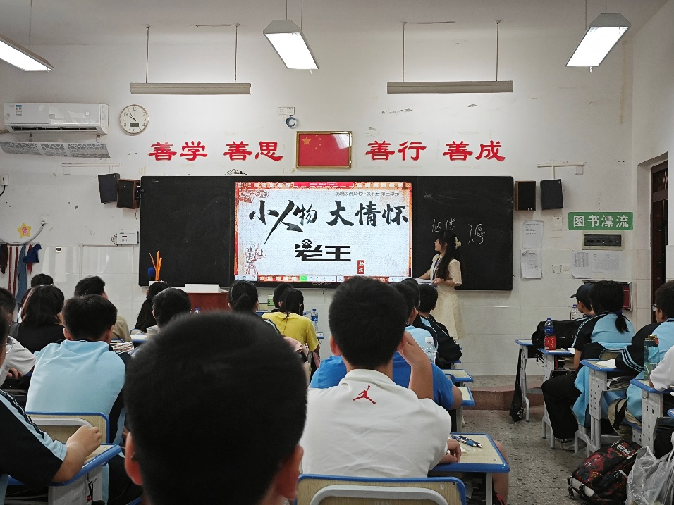 4月17日上午10点,文学院2021级陶行知实验班的实习生卢静在七年级四班上《老王》一课,韦月圆、覃琦峰等实习生前去听课并在听课后参与评课活动。