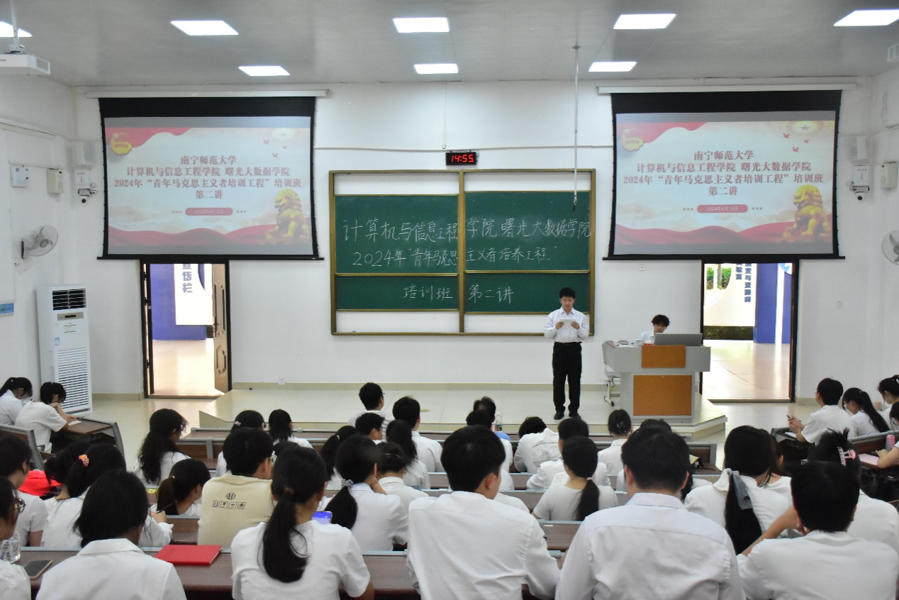 与信息工程学院/曙光大数据学院在地海楼B109教室举行“青年马克思主义者培养工程”培训班(以下简称“青马班”)第二讲。此次培训由学院党委书记余朝文主讲,辅导员宋宏斌老师、团委学生会主席团和我院“青马班”全体学员参加。