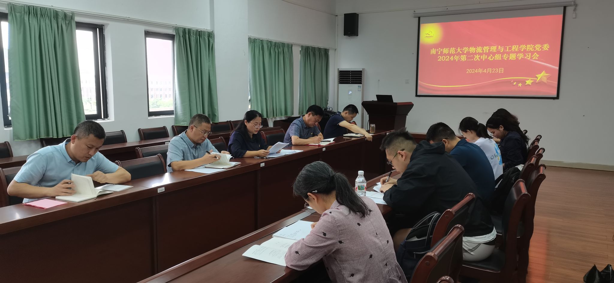 4月23日上午,物流管理与工程学院在武鸣校区地化楼C414会议室召开学院党委理论学习中心组2024年度第二次学习(扩大)会。学习会由学院党委书记陈兵同志主持,学院领导班子、党委委员、纪委委员、党支部书记参加了学习。