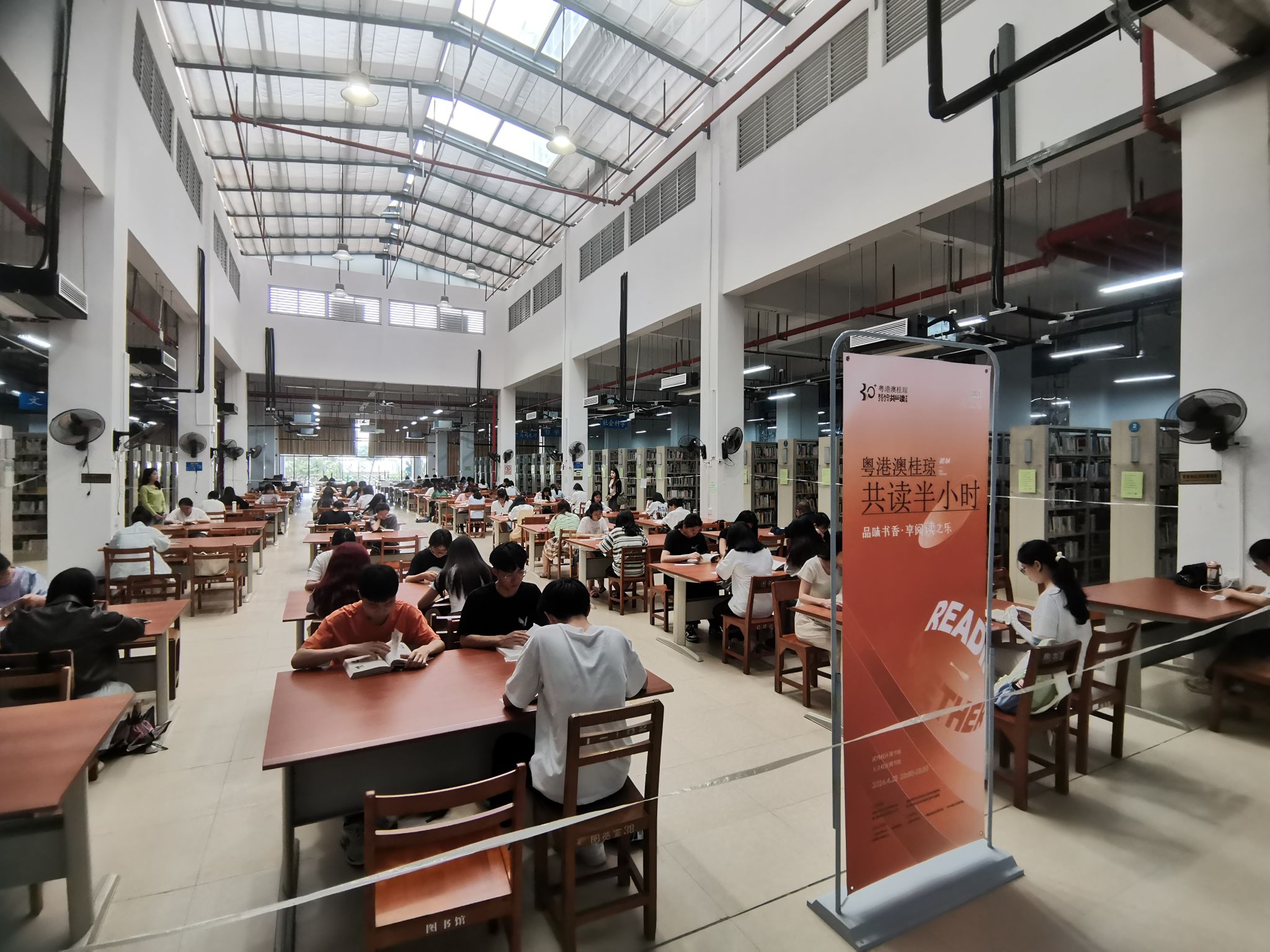 为迎接世界读书日的到来,深入推进全民阅读,传递阅读力量,4月23日上午10点,图书馆积极响应华南图书馆联盟的号召,组织我校师生读者开展粤港澳桂琼五地“共读半小时”活动。我校图书馆作为活动分会场之一,分别在武鸣、五合两校区图书馆设置共读点,来自全校各单位465名师生读者加入共读行列,以集体共读的方式,共享读书之乐,感受阅读之美。