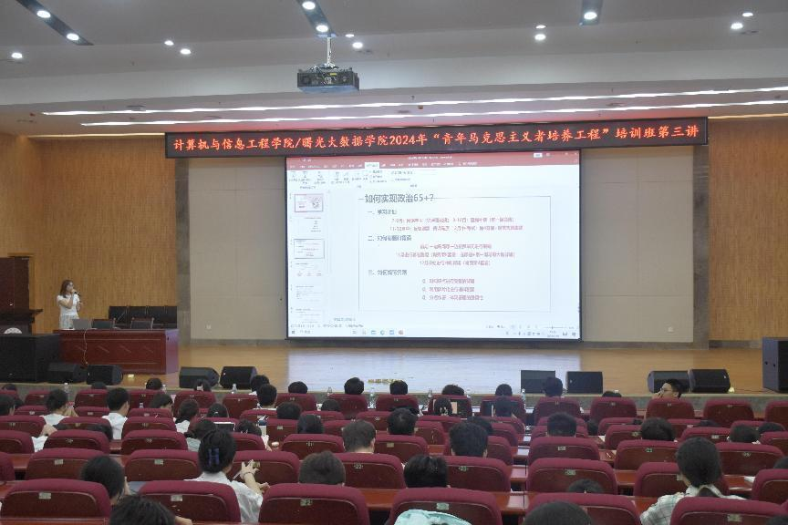 计算机与信息工程学院/曙光大数据学院4月19日在图书馆报告厅举行“青年马克思主义者培养工程”(以下简称“青马班”)培训班第三讲——2024年考研求职经验分享会。此次会议邀请了多位优秀学长学姐作为嘉宾分享经验,学院兼职辅导员石凯、团委学生会主席团、我院“青马班”全体学员以及三百多位同学参加。