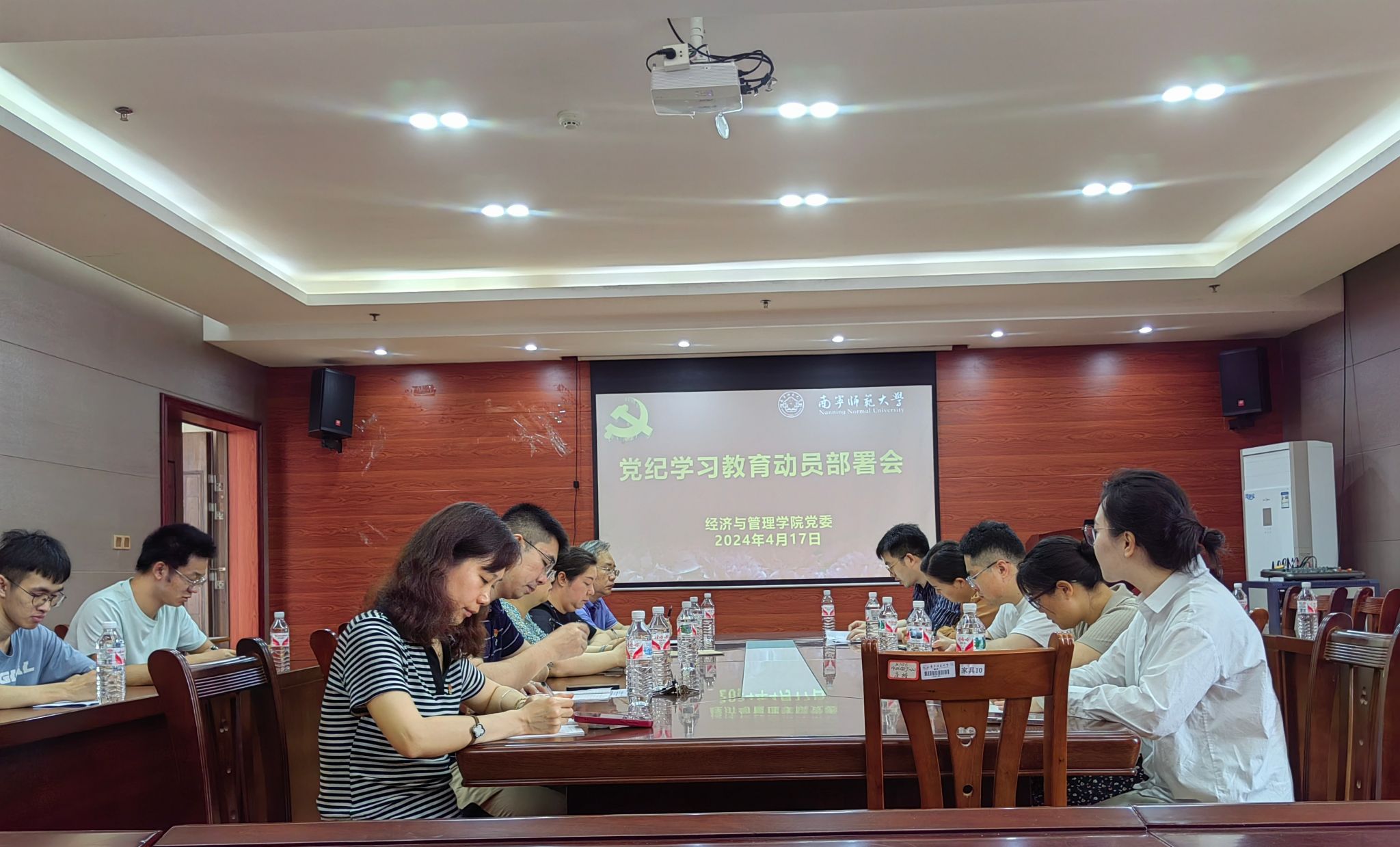 4月17日,经济与管理学院召开党纪学习教育动员部署会,部署党纪学习教育工作任务。经济与管理学院党委委员,纪委委员、各党支部书记、支委参加此次会议,会议由经济与管理学院党委副书记、纪委书记何一飞主持。