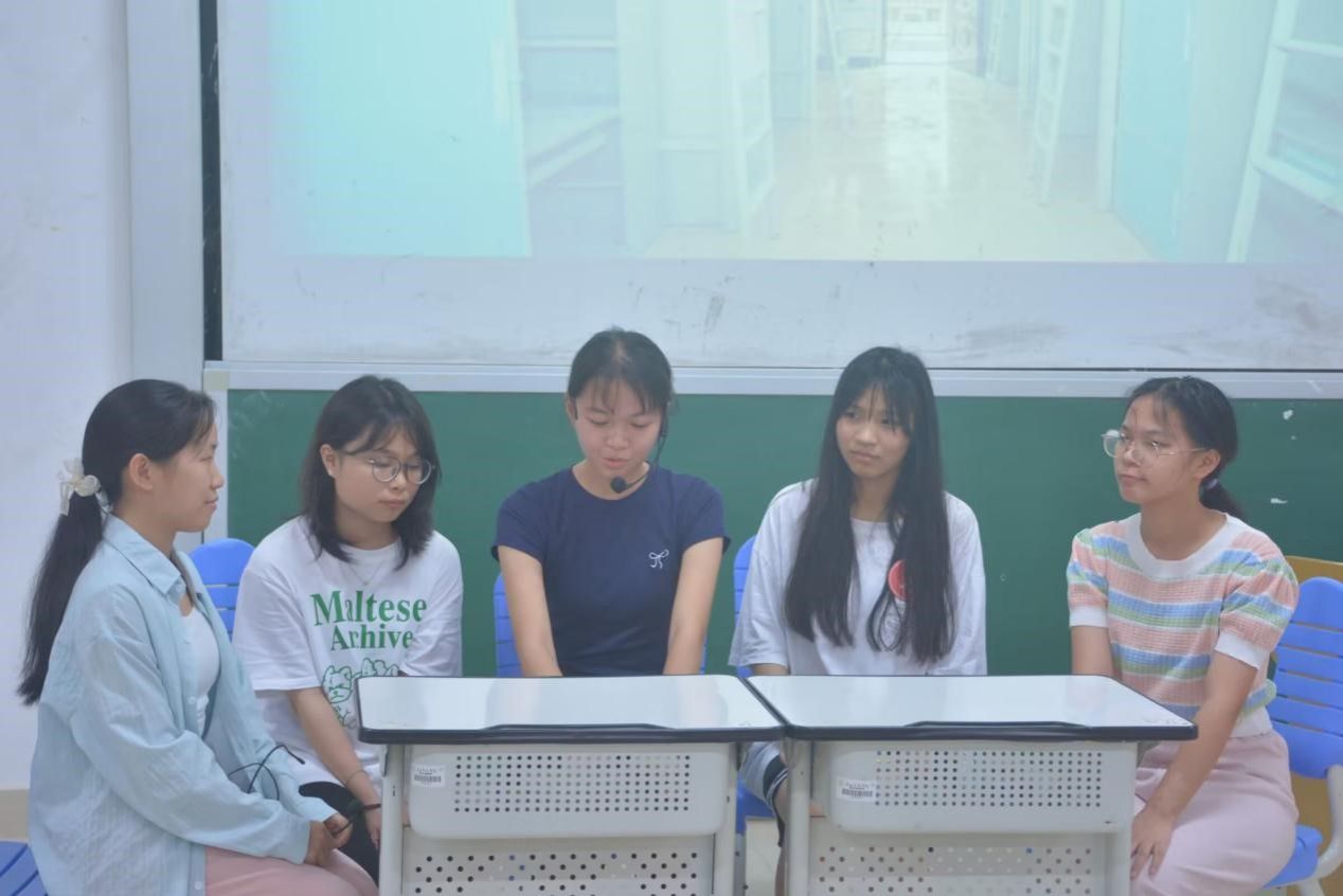 主持人向同学们介绍了比赛形式、比赛规则。1号宿舍在介绍本宿舍成员后通过情景剧形式向大家展示广西各地特色文化,表达出“即使宿舍每个人来自不同地区,但相聚就是一家人”的宿舍理念;2号宿舍通过情景剧形式演绎日常生活可能会出现的矛盾情景,体现出“每个人都要相互尊重才能和谐共处”的宿舍理念等等,在宿舍展示环节,各宿舍通过不同形式来展现各宿舍特色、宿舍公约、宿舍文化等……