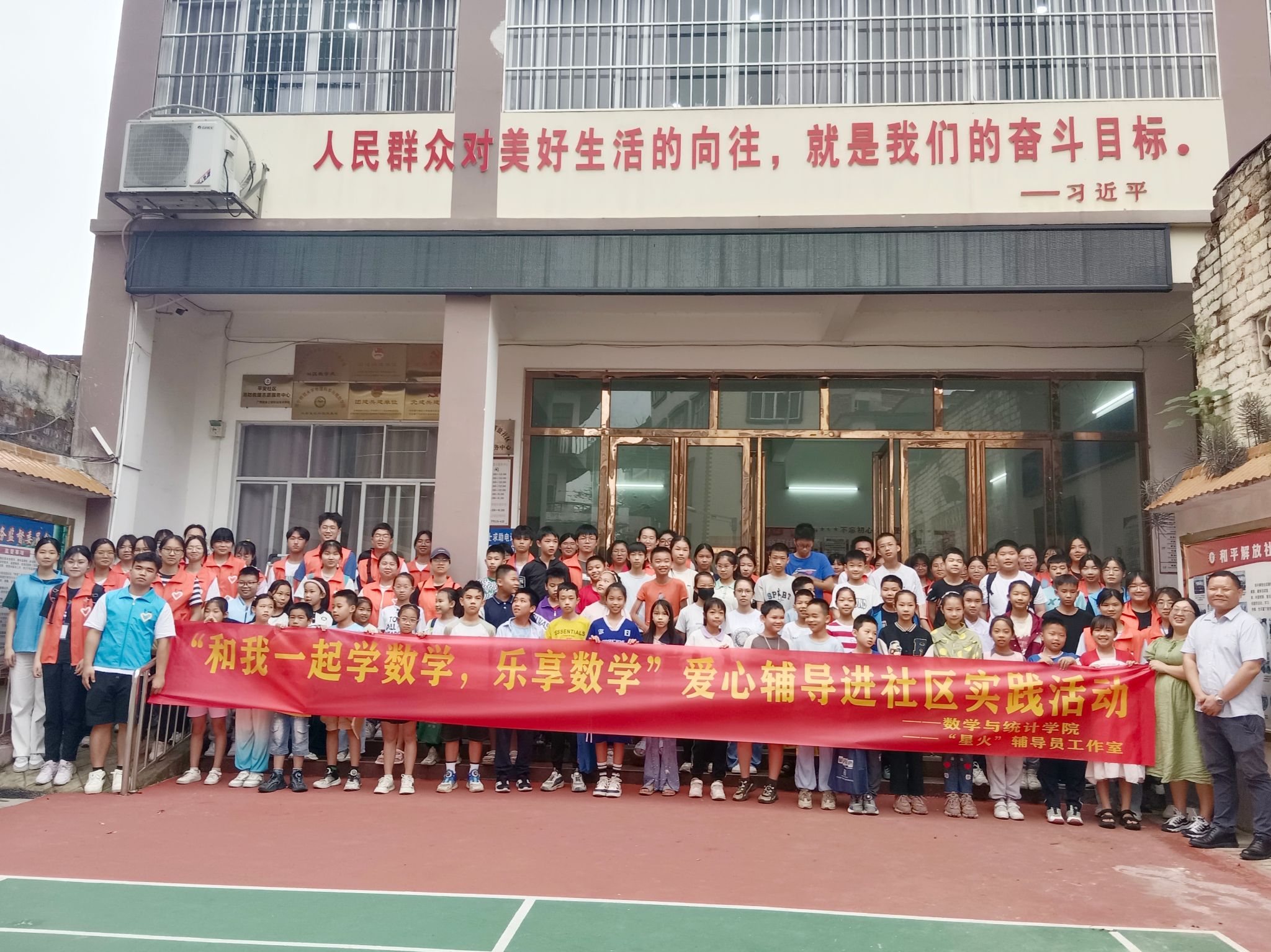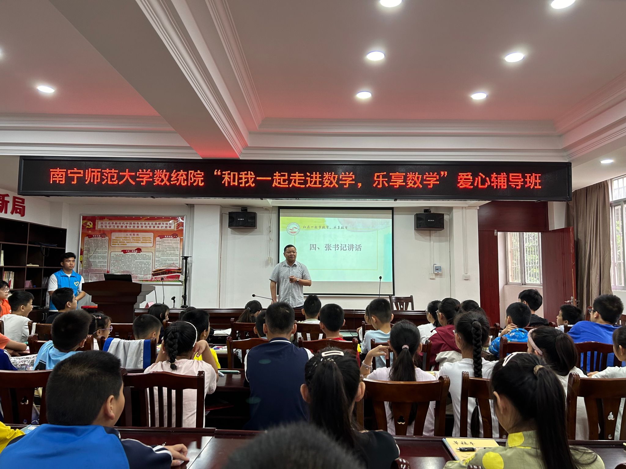 4月20日、4月27日,数学与统计学院在南宁市武鸣区和平社区分别举行了以“和我一起走进数学,乐享数学”为主题的的爱心辅导活动开幕式暨第一期、第二期爱心辅导活动。武鸣和平解放社区党委张健书记、该院梁卡霖老师和35名志愿者、60余名三到六年级小学生参加此次活动。