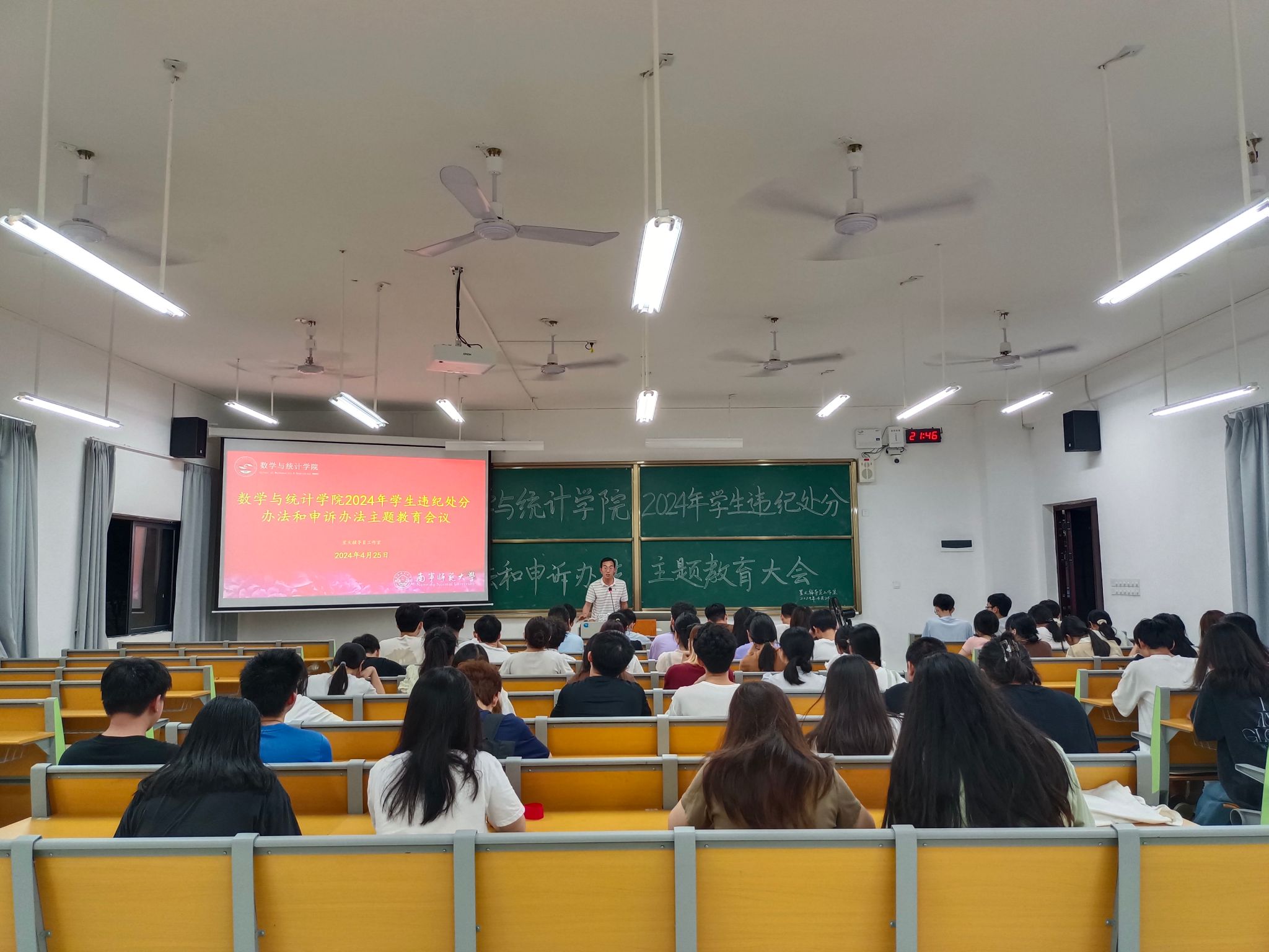为了进一步做好新时代的学生日常管理服务,加强学生文明法治教育,4月25日,数学与统计学院在实验2-A104教室召开《南宁师范大学学生违纪处分规定(2024年修订)》、《南宁师范大学学生申诉处理办法(2024年修订)》专题学习会。该院各班班长、纪检委员参加此次会议。