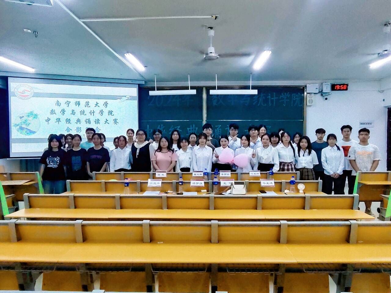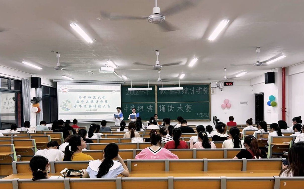 声动校园,情韵中华。为进一步传承和弘扬中华优秀传统文化,提高学生的朗诵技能。4月26日晚上,数学与统计学院在实验2-A301教室成功举办了中华经典诵读大赛,此次比赛共有八组选手参加。