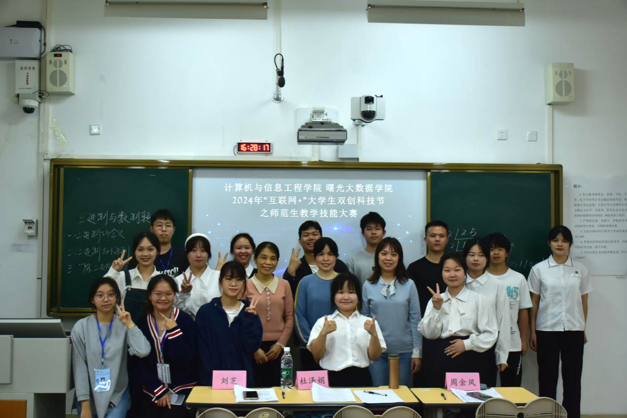 为加强师范生教学技能训练,提高师范生的综合教学能力,同时选拔优秀选手代表参加完美(中国)师范生教学技能大赛。近日,计算机与信息工程学院/曙光大数据学院在武鸣1号教学楼104、105、106教室举办2024年“互联网+”大学生双创科技节之师范生教学技能大赛决赛。本次决赛邀请了杜泽娟、刘芝、周金凤、梁新艳、李行、石亚冰、屈慧洁老师担任评委。