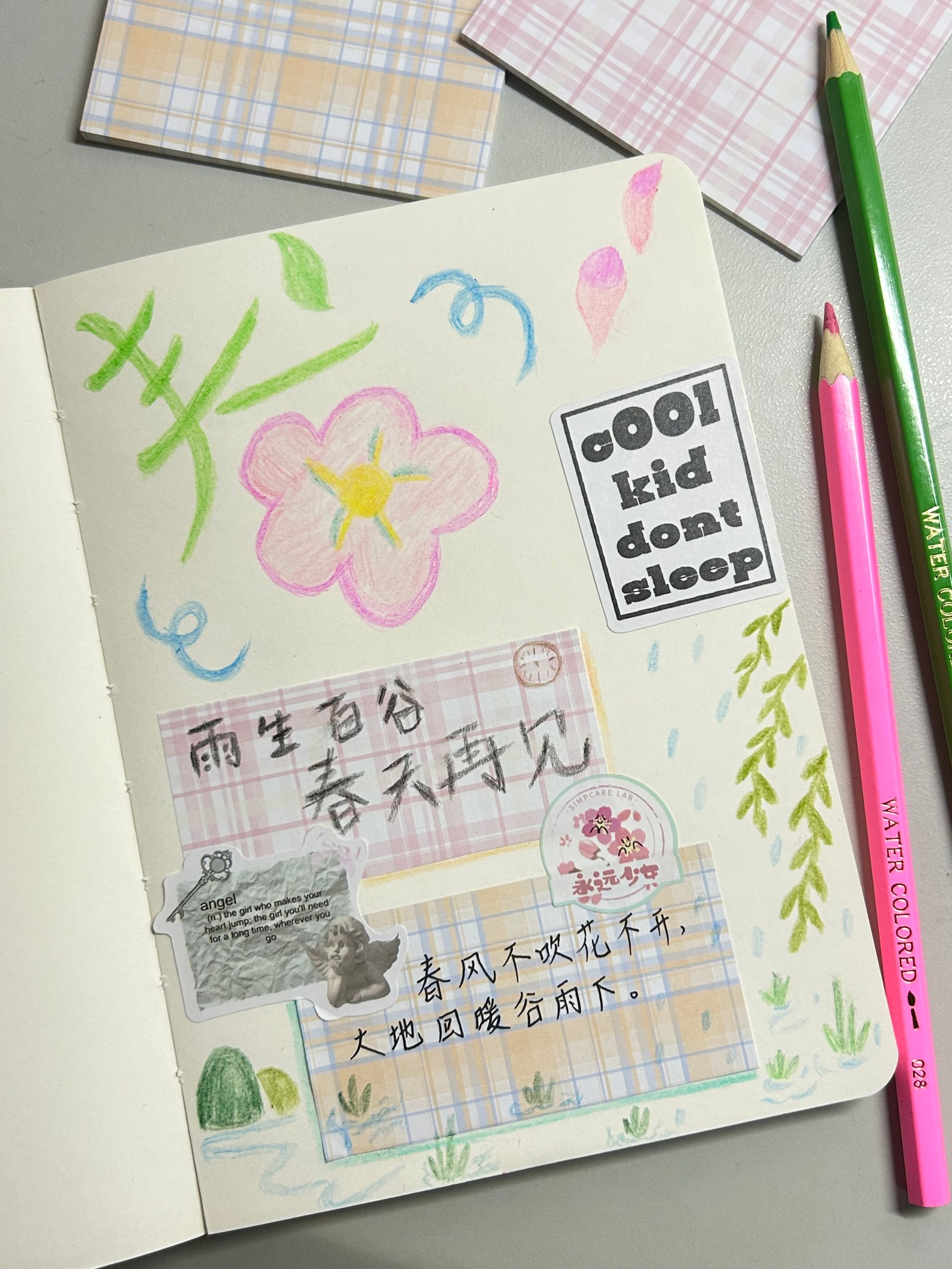 本次活动不仅结合了传统文化与现代创意,通过手账的艺术创作,让大家深刻感受谷雨时节的独特魅力,同时也进一步展现了个人的创造力、艺术才华以及对传统文化的热爱。