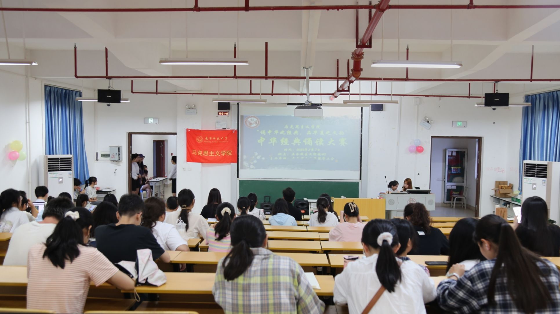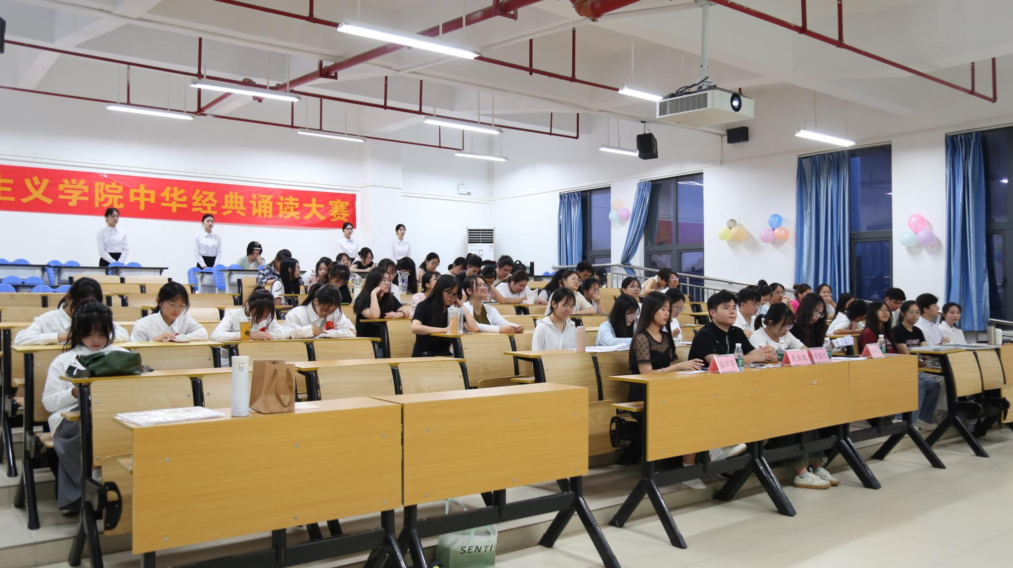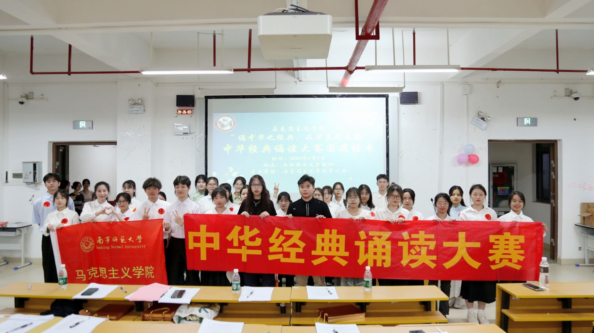 为贯彻落实党的二十大精神,增强对中华优秀传统文化的热爱,提高马克思主义学院学子的文化自信,5月7日晚,马克思主义学院在文综415教室举行了马克思主义学院2024年中华经典诵读大赛院级初赛。出席此次大赛的人员有辅导员黄业毅、兼职辅导员黄露丝、办公室负责人潘洁华、宣传部负责人林丹蕾以及大众评审和各班级代表。
