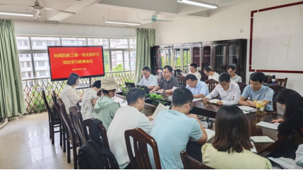 2024年5月14日,地理与海洋研究院教工第一党支部全体党员在明秀校区文星楼517室开展党纪学习教育专题学习会。院长胡宝清、党委副书记、纪委书记张建兵同志作为普通党员参加了学习会,会议由支部书记覃星铭同志主持。