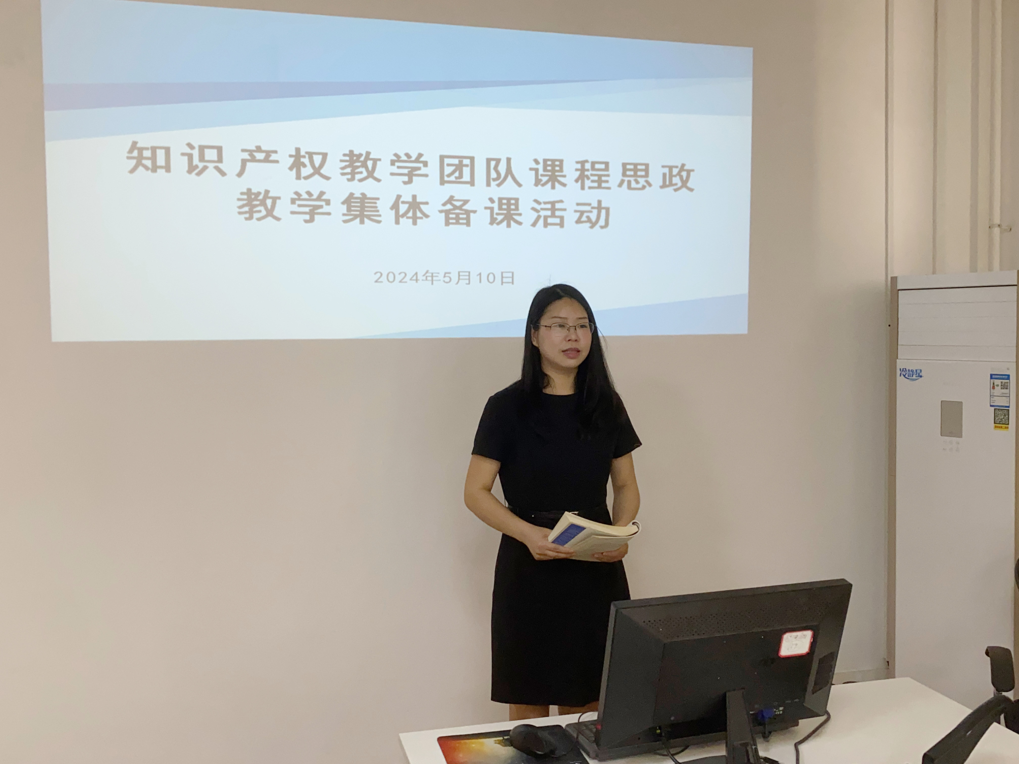 在交流讨论阶段,卫绪华副教授阐述了本学期《知识产权法》课程的教学改革方案,提出将课程打造成校企共建课程具体措施和方法。张丽君博士分享了参与教学改革实践的心得,并就课程思政深度融入专业课堂的途径进行了介绍。