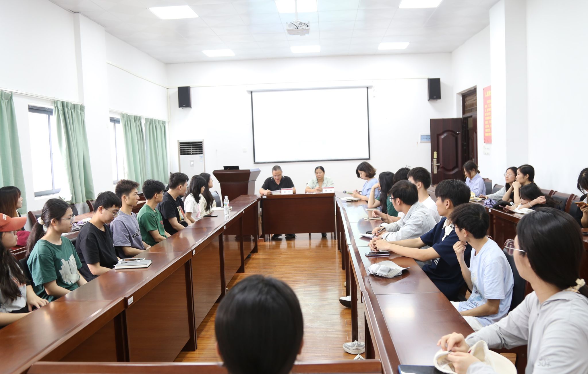 同学们积极踊跃地参与话题讨论,提出了许多关于就业面试、论文撰写、简历制作、毕业离校的问题,会场氛围轻松愉快。学院领导、老师认真倾听、仔细询问,细致深入解答同学们提出的问题。