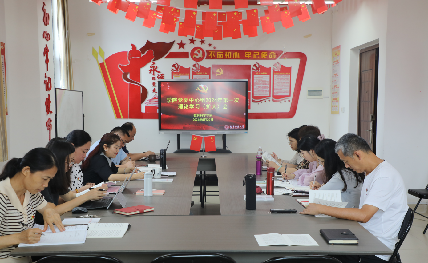 5月20日上午,教育科学学院在五合校区理楼1005党员会议室召开党委理论学习中心组2024年第一次学习(扩大)会议。会议由教育科学学院党委书记庞芳主持,党委理论学习中心组成员及各党支部书记参加会议。
