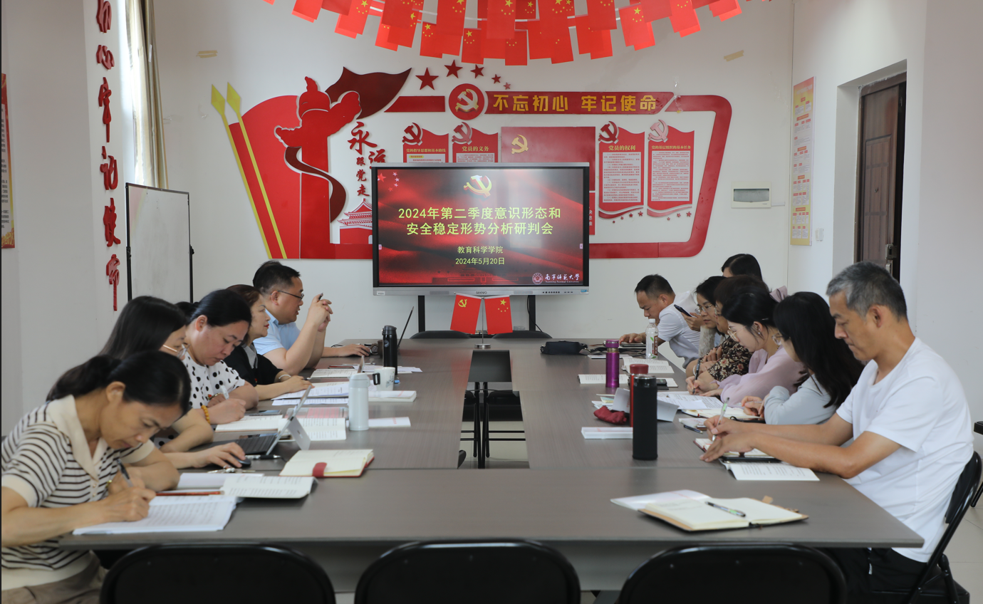 5月20日上午,教育科学学院在五合校区理楼1005党员会议室召开2024年第二季度安全稳定与意识形态分析研判会议。教育科学学院党委委员、纪委委员、各支部书记、辅导员等参加会议。会议由党委书记庞芳主持。