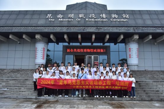 5月19日,计算机与信息工程学院/曙光大数据学院2024年“青年马克思主义者培养工程”培训班(以下简称“青马班”)赴昆仑关战役遗址开展以“青春向党心,学史铸国魂”为主题的校外研学实践活动。参与此次活动的有学院辅导员宋宏斌老师、各党支部代表以及“青马班”学员。