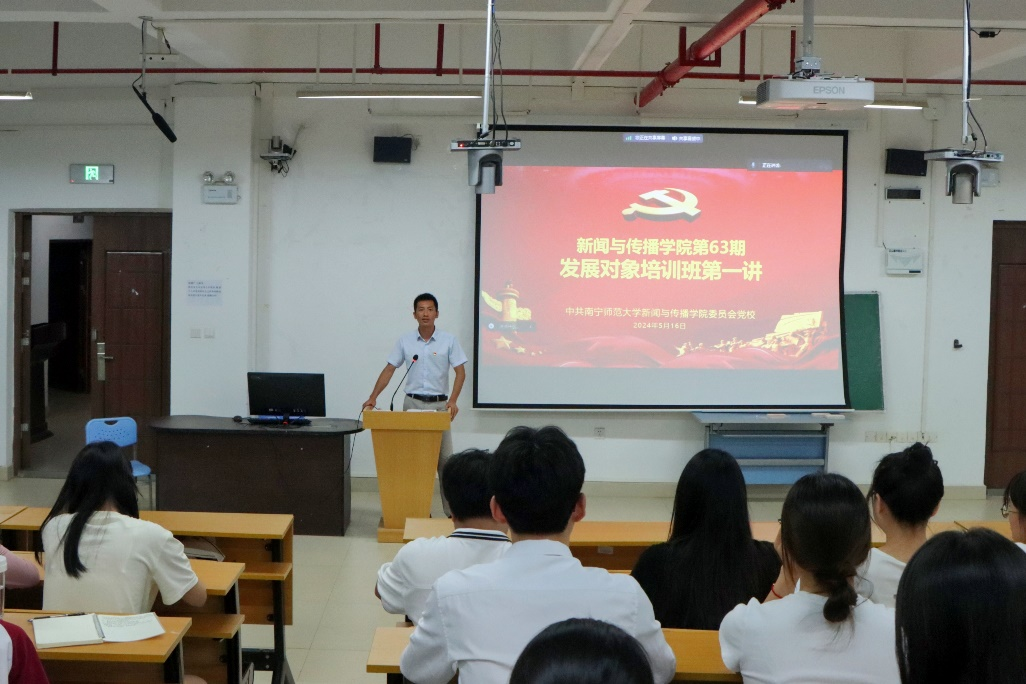 5月16日晚,新闻与传播学院第63期发展对象培训班的第一讲在文综楼615室举行。本次党课由新闻与传播学院党委组织委员廖林泉老师担任主讲人。