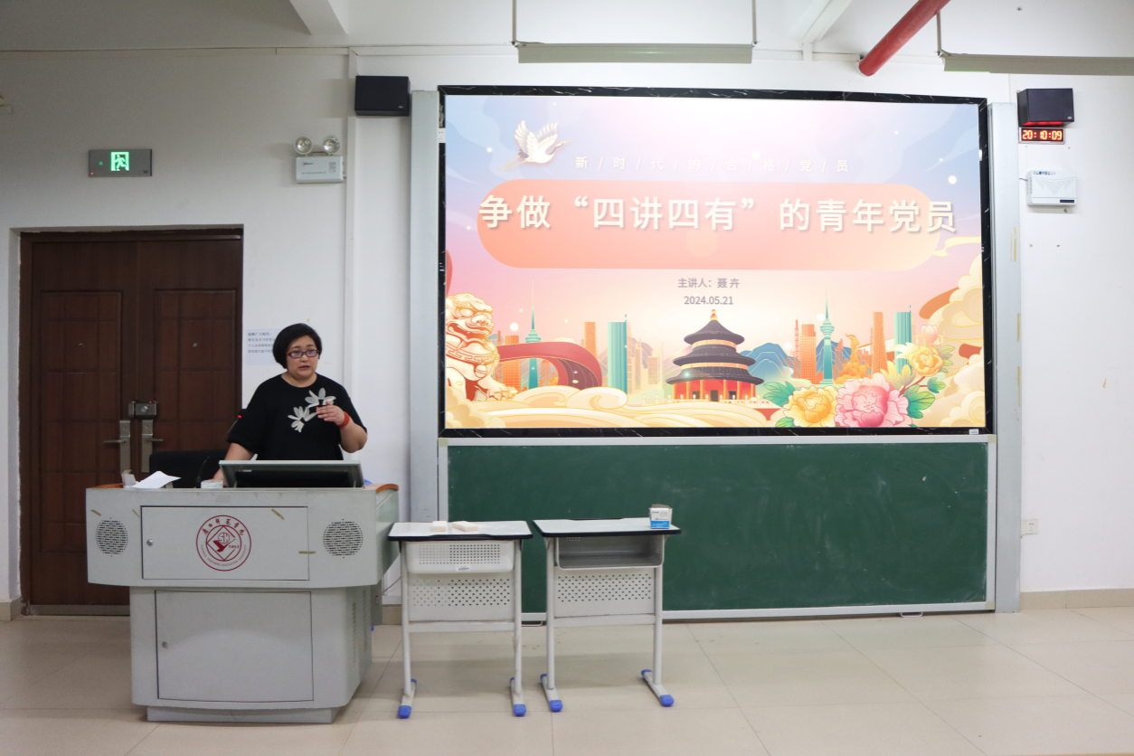 课堂上,聂卉书记首先通过问答形式,引导全体学员回顾并巩固党的理论知识。随后,她从思想引领、政治追求、理想信仰和人生追求四个维度,全面而深入地解读了“四讲四有”的内涵,明确了新时代合格党员的标准,并提出了提升自我成为新时代合格党员的具体举措。