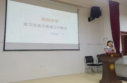 新民中学的英语教研组长李苗老师热情接待了我院的2021英语行知班全体学生以及带队林绍丽老师,并且为实习生进行了细致的岗前培训。李老师指出,实习生们在实习过程中应注意为人师表,不体罚学生,对作业完成质量较低学生进行人文关怀,给学生们做好榜样;并鼓励同学们积极参加每周三下午的备课组会议,聆听优秀老师的意见和建议;最主要的是公开课不少于四节。除此以外,李老师根据宿舍管理、请假要求、安全管理等方面一一给实习生们解释实习过程中的注意事项,让实习生熟悉了新民中学的完美(中国)管理制度,以便尽快融入实习工作和生活。