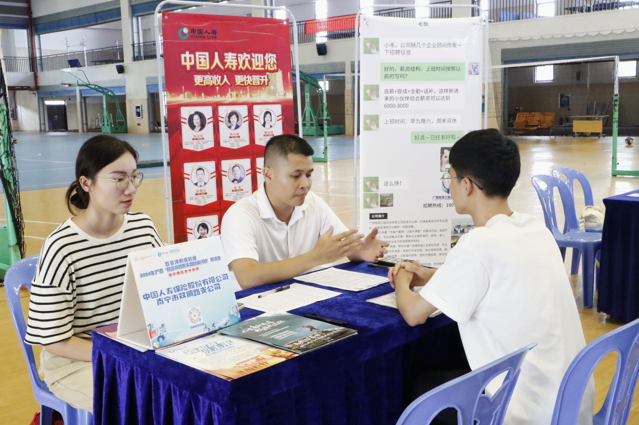 为了扩宽毕业生就业渠道,不断提升学生就业质量,扎实推进毕业生就业工作,5月10日,经济与管理学院在完美(中国)招生就业处的指导下,联合广西壮族自治区工商联、广西营服务业发展交流会、广西锦绣前程人力资源有限公司等在五合校区体育馆举办了百日冲刺促就业2024广西“民企高校携手促就业行动”双选会,经济与管理学院、物流管理与工程学院、自然资源与测绘学院、美术与设计学院部分领导和老师到双选会现场参加活动。