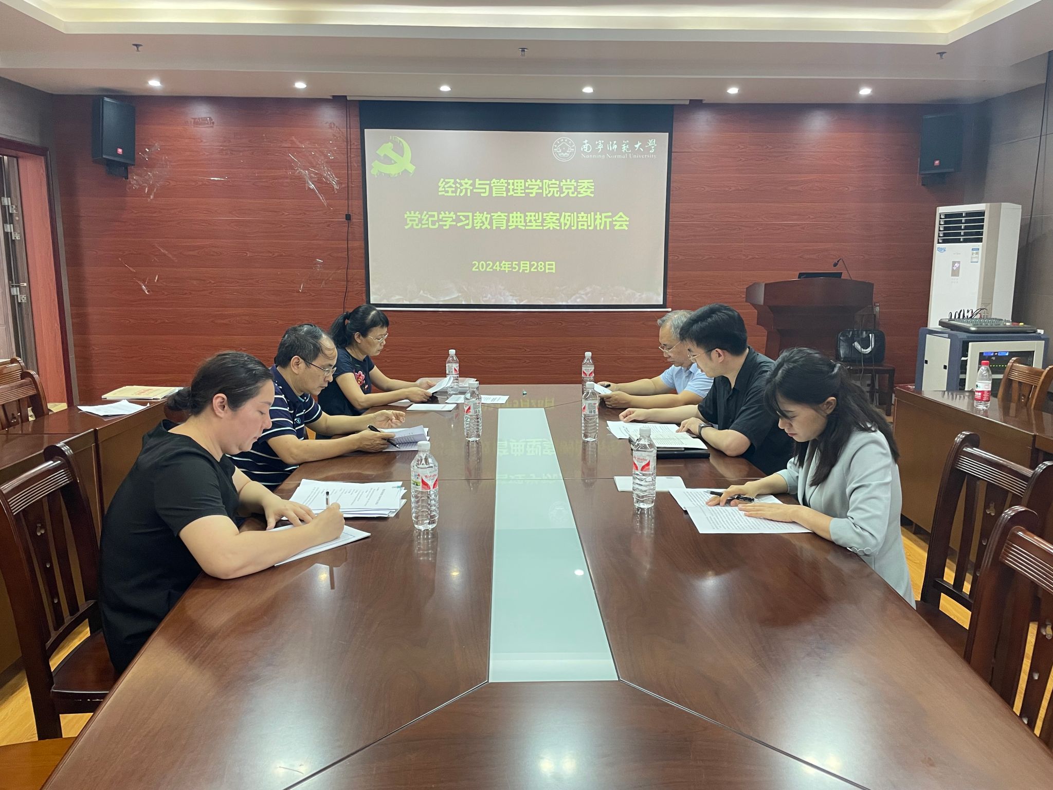 5月23日上午、5月28日下午,经济与管理学院领导班子分别在五合校区理综楼开展党纪学习教育第二次集中学习。集中学习采取集中研读与案例剖析相结合的方式开展,学院处级党员领导成员参加了集中学习,邀请无党派人士丘兆逸副院长、学院组织员及办公室主任列席了集中学习的案例剖析会。