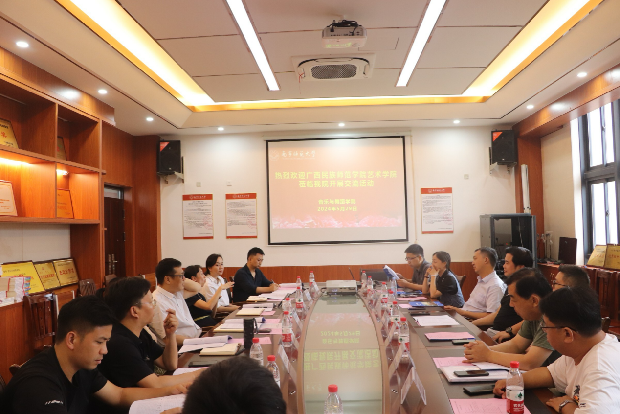 5月29日,广西民族师范学院艺术学院艺术学院院长农星光、副院长刘应军、刘德崇以及各专业负责人一行9人到音乐与舞蹈学院考察交流。学院党委书记陈宇、院长黄妙秋、副书记龙学禧、副院长王韦及专业教师接待了农星光院长一行。
