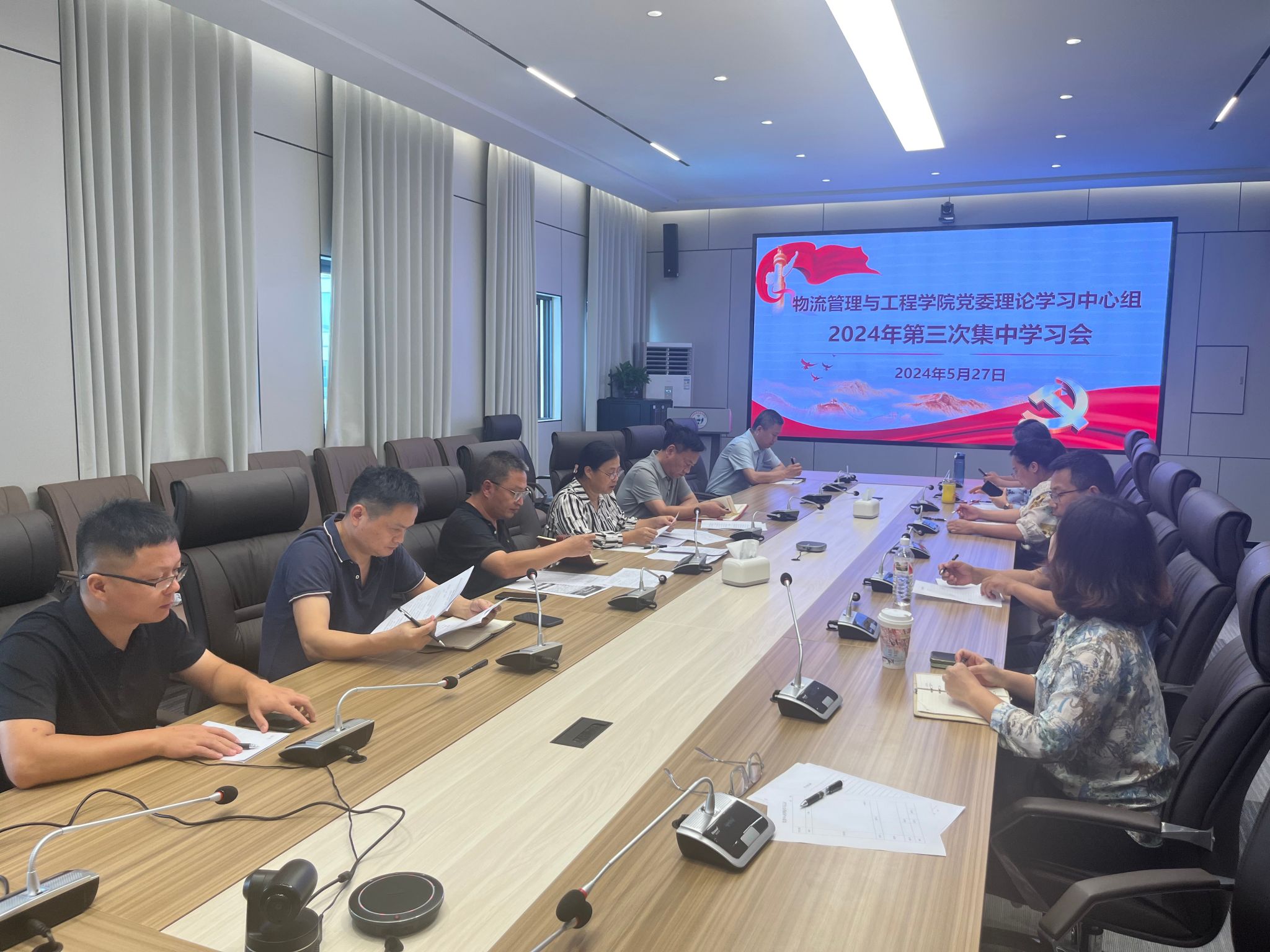 5月27日下午,物流管理与工程学院在武鸣校区地化楼C413室召开学院党委理论学习中心组2024年第三次集中学习会。学院党委理论学习中心组成员参加会议。会议由学院党委书记陈兵主持。