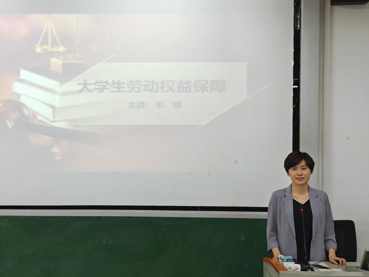 韦婕总经理聚焦在校期间需注意的劳动权益保障问题、职场中容易忽视的劳动权益保障问题、如何维权等三个方面,结合知识普及、法治宣传、案例分析、互动问答等形式,与学生代表进行了深入交流,参加活动的学生代表积极提问、踊跃发言,现场气氛十分活跃。作为优秀校友,韦婕总经理还向同学们提出三点希望:一是要客观认识自我,深入了解自己的兴趣方向、特点特长、优势与不足,不断认识自我、发掘自我、成就自我,为人生发展奠定坚实基础;二是要认真做好职业生涯规划,积极探索自身特点与职业发展的契合点,提早谋划个人生涯发展,为人生发展明确正确方向;三是要勇敢走向社会、走进社会,积极通过专业实习、社会实践等机会,把课堂所学知识与岗位工作相结合,不断提升职业技能、积累工作经验、提高就业创业能力,迈出走好人生发展第一步。这次讲座主题鲜明、内容丰富、生动活泼,得到在场师生高度好评。同学们纷纷表示,讲座很有趣、很有料、很有帮助,是一堂干货满满、收获满满好课程!