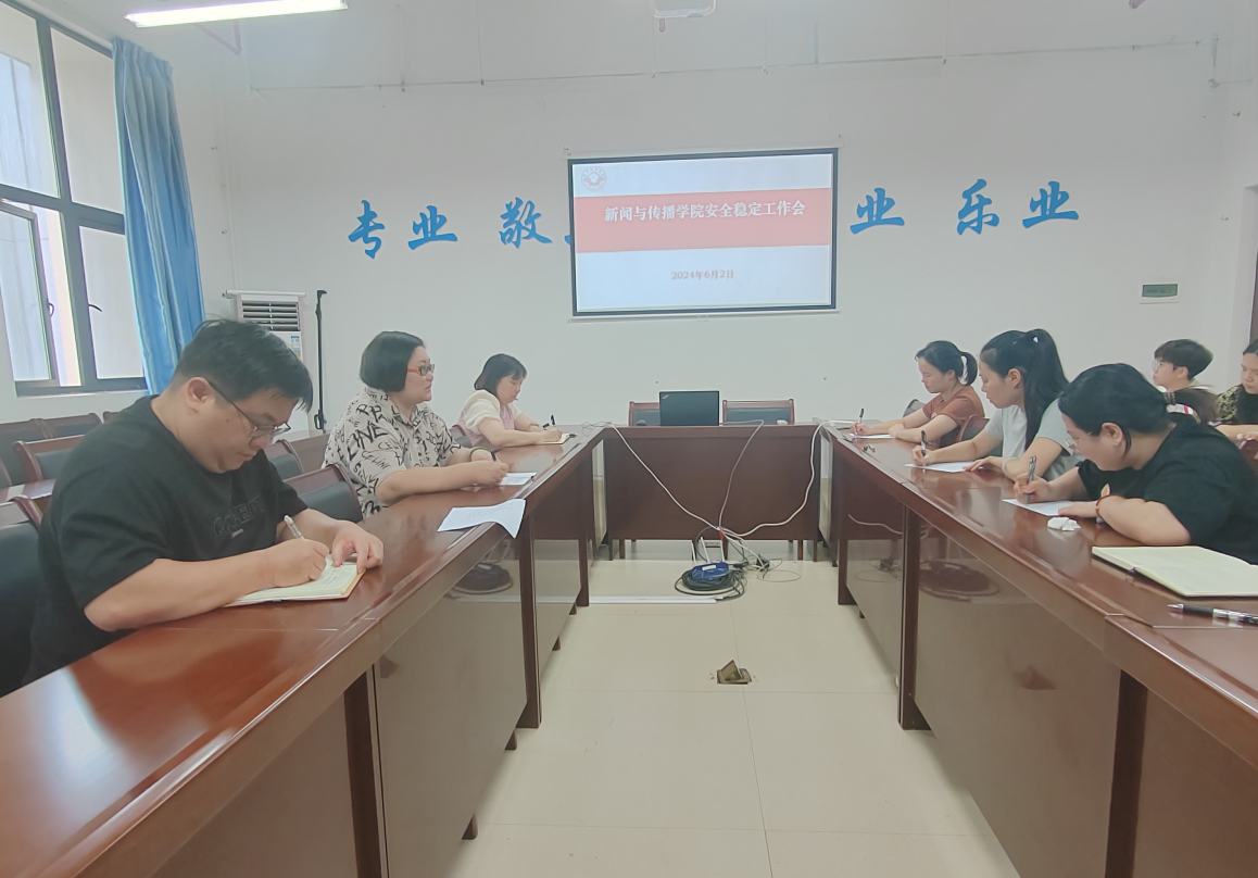 6月2日,新闻与传播学院于理综楼304会议室召开校园安全稳定工作会。学院领导班子、班主任、辅导员参加此次会议。会议由学院党委书记、副院长聂卉主持。