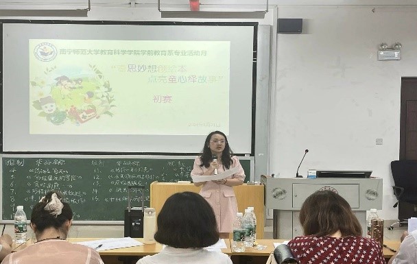 5月14日下午,教育科学学院2024年学前教育专业活动月“奇思妙想创绘本,点亮童心绎故事”学前儿童绘本创编、演绎比赛活动竞赛于五合文综915举行,学前教育系副主任张媛、王晓军和李新园老师等嘉宾及评委老师莅临比赛现场进行指导。
