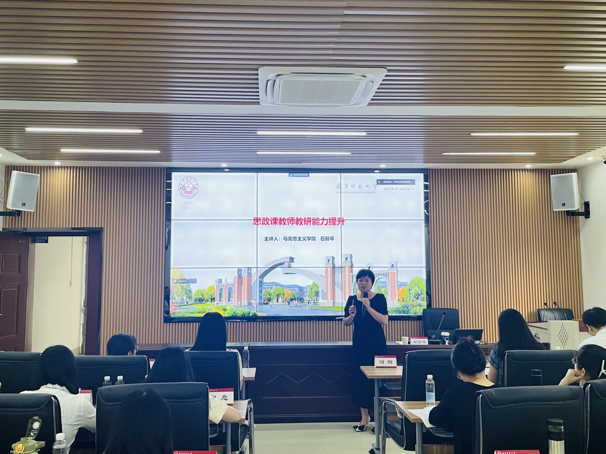开班仪式结束后,南宁师范大学马克思主义学院副院长石丽琴教授以《高校思想政治理论课教师研究能力提升》为题作专题报告。石丽琴教授从教研能力理解、思政课教师教研能力提升的重要性、思政课教师教研能力提升的四个重要意识及思政课教师教研能力提升的重要途径等四个方面与学员们分享。她指出,高校思政课教师要深入研究思政课教学改革中的热点、难点问题,提高思政课教学内容的深度和广度,守正创新推动思政课建设内涵式发展。培训结束后,石丽琴教授认真、耐心地回答学员们提出自己平时研究中遇到的困惑。