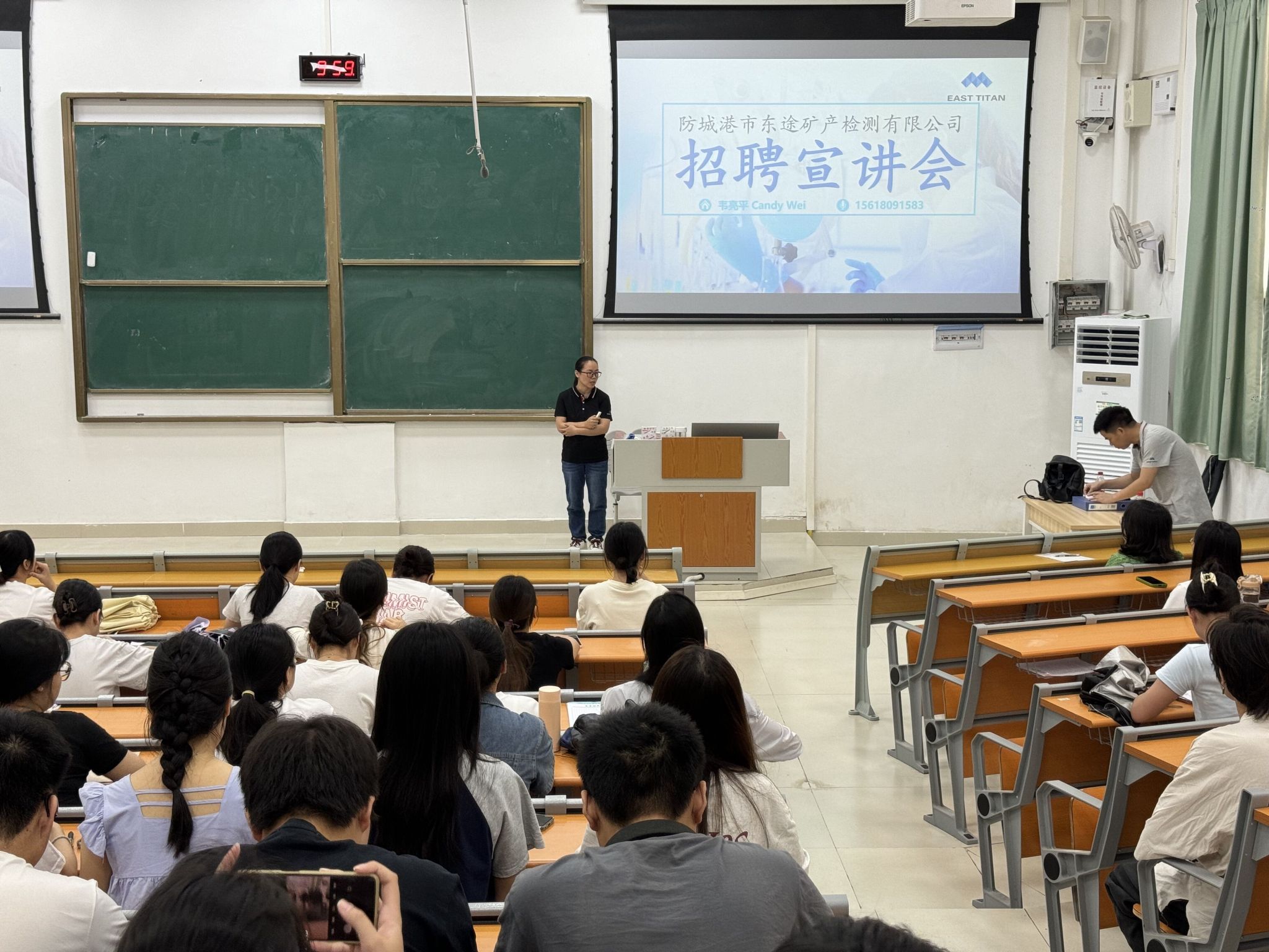 为更好地为毕业生提供与企业直接互动的机会,帮助他们了解当前的就业市场和行业趋势。5月29日,化学与材料学院邀请防城港市东途矿产检测有限公司在我校武鸣校区地化楼B111教室开展招聘宣讲会。会议由化学与材料学院团委王立彬书记主持,2021级应用化学、高分子材料与工程专业全体学生参会。