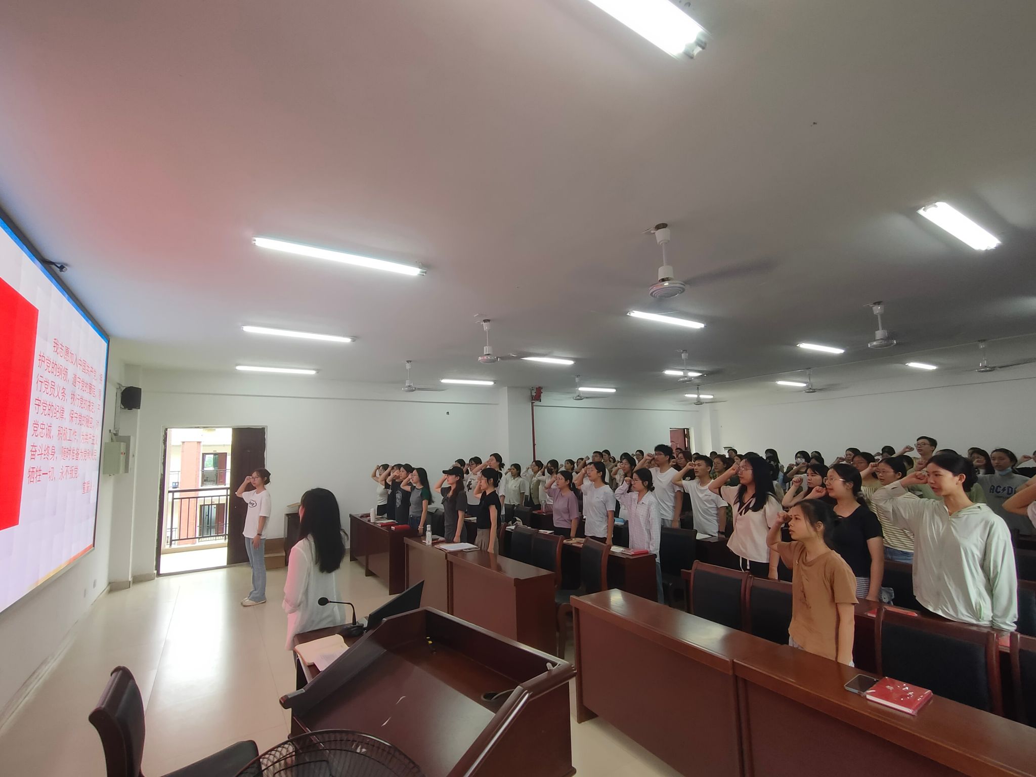 紧接着,蔡老师对全体毕业生党员寄予了殷切的要求和期望:一是要保持一颗“红心”,坚定信念,永葆党员初心,时刻牢记党员身份,进一步强化纪律意识、加强自我约束,始终做到忠诚干净担当,在今后的学习和工作中继续发挥党员的先锋模范作用。二是要尽快完成从学生到社会人的转变,希望大家适应新的环境,练就过硬本领。三是保持热爱,毕业后可能会面临很多艰难困苦或挑战,希望各位党员保持冷静坚定的心,敢于担当,迎接风雨,积累经验,不断磨砺自我。最后,毕业班党员彭靖雯同志带领与会党员重温入党誓词。