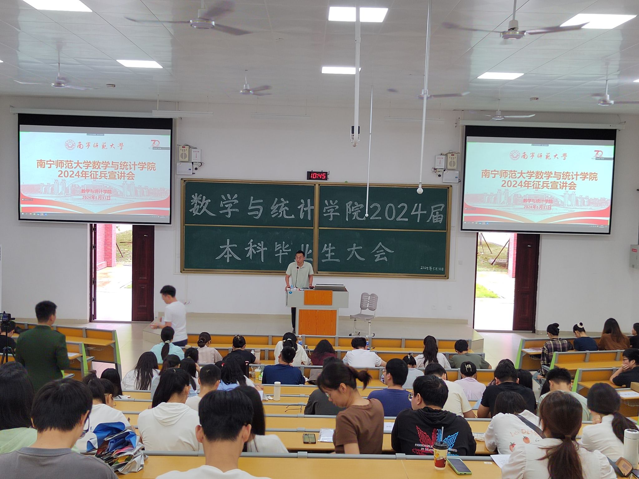 为响应国家号召,激发广大学子的参军入伍报国热情,5月31日晚,数学与统计学院在实验楼2-A105教室组织毕业生征兵宣讲活动。