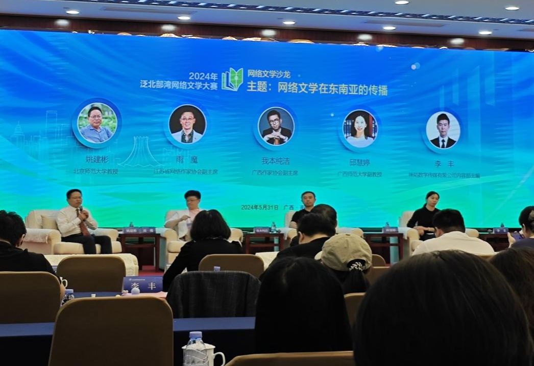 2024年5月31日上午,为激发同学们对文学作品创作的热爱,提高自身文学素养,促进学生写作综合素养达成,感受网络文学的独特魅力,文学院受广西人民出版社邀请参加2023年泛北部湾网络文学大赛颁奖暨2024年泛北部湾网络文学大赛启动仪式。本次活动由广西壮族自治区新闻出版局、云南省新闻出版局、海南省新闻出版局、广西壮族自治区互联网信息办公室、广西壮族自治区文学艺术界联合会、广西出版传媒集团有限公司主办,参加此次活动的有区级领导、专家代表、企业代表、网络作家代表、媒体代表等,还有各高校的领导、专家和文学院20余名学生代表。