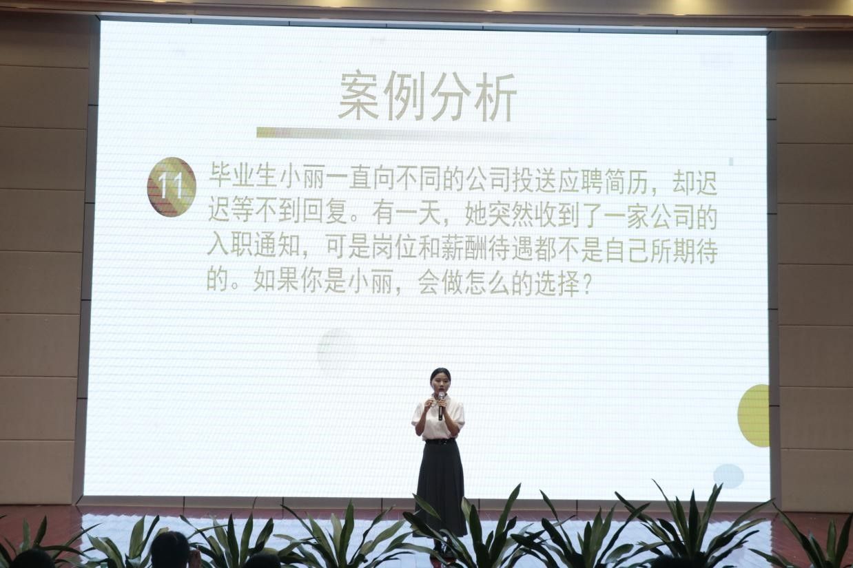 随后,钟振花老师给出四点建议:一是要始终坚定信念,自信从容地展现自我;二是学会排除干扰,专注核心问题;三是准确定位,多角度思索问题;四是总结自身表现,提升应对能力。她希望同学们借此机会更加清晰地认识自我,为未来职业发展做准备。