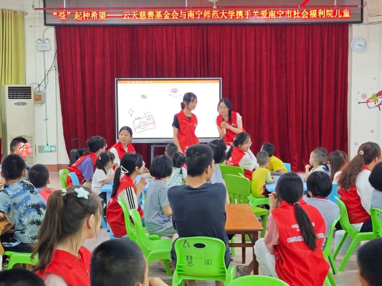 为关爱孤残儿童等特殊群体,打造学院品牌育人项目,教育科学学院拟与云天慈善基金会建立稳定合作关系,与南宁市社会福利院建立长期社会志愿服务实践点。6月24日下午,教育科学学院携手云天慈善基金会来到南宁市福利院开展“润心伴成长,同心护未来”关爱儿童健康主题活动。