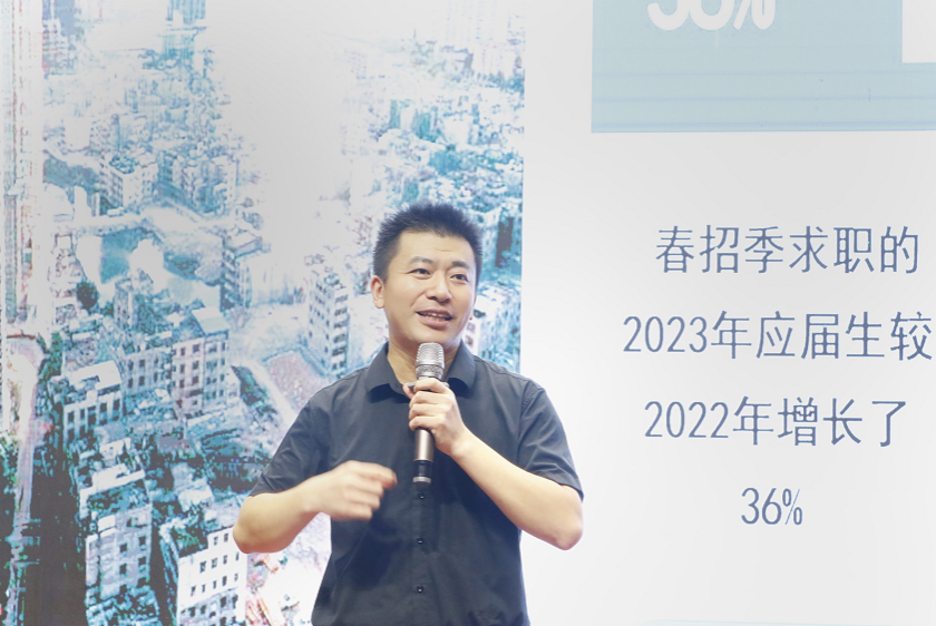 讲座上,肖钧泽以国企校园招聘为主要内容,详细讲解了能源行业、通信行业、邮政行业、粮食行业、烟草行业五个行业的主要情况,结合当前大学生职业生涯选择的基本问题,对大学生职业选择的方向、招聘要求和招聘考试内容进行了解读。讲座案例丰富,语言幽默风趣,赢得了在场学生阵阵掌声。最后,肖钧泽与学生们进行了热烈的互动,详细的解答了学生们的各种疑问,针对大家的疑惑、疑问为大家提供了建议。