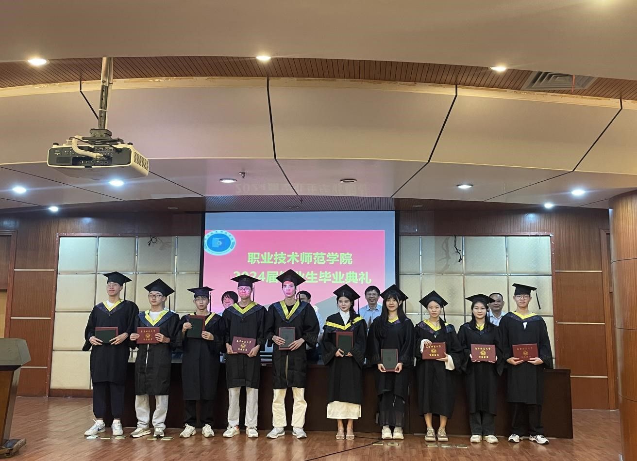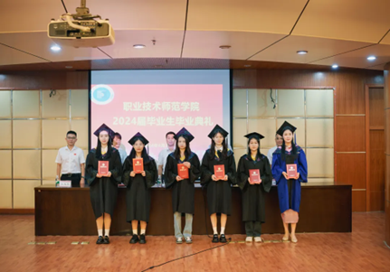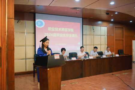 6月28日上午,职业技术师范学院2024届毕业生毕业典礼在明秀校区图书馆三楼报告厅举行。学院院长陈良,副院长唐锡海、蓝洁,组织员刘日龙、院长助理王忠昌及学院教师代表、辅导员和2024届毕业生参加本次典礼,毕业典礼由学院副院长唐锡海主持。