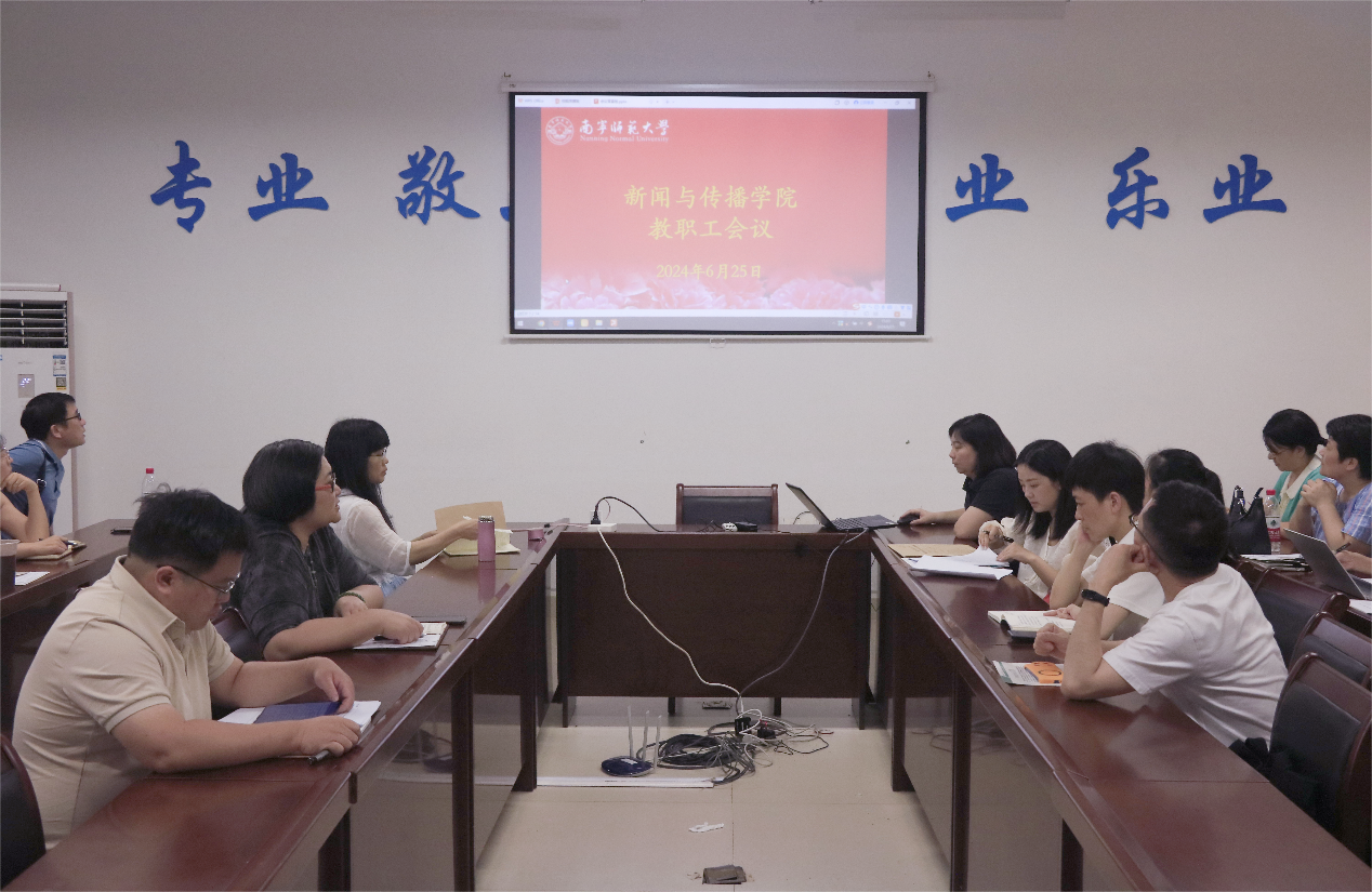 6月25日下午,新闻与传播学院于理综楼304召开全体教职工会议。本次会议由学院党委书记聂卉主持,学院领导和全体教职工参与本次会议。