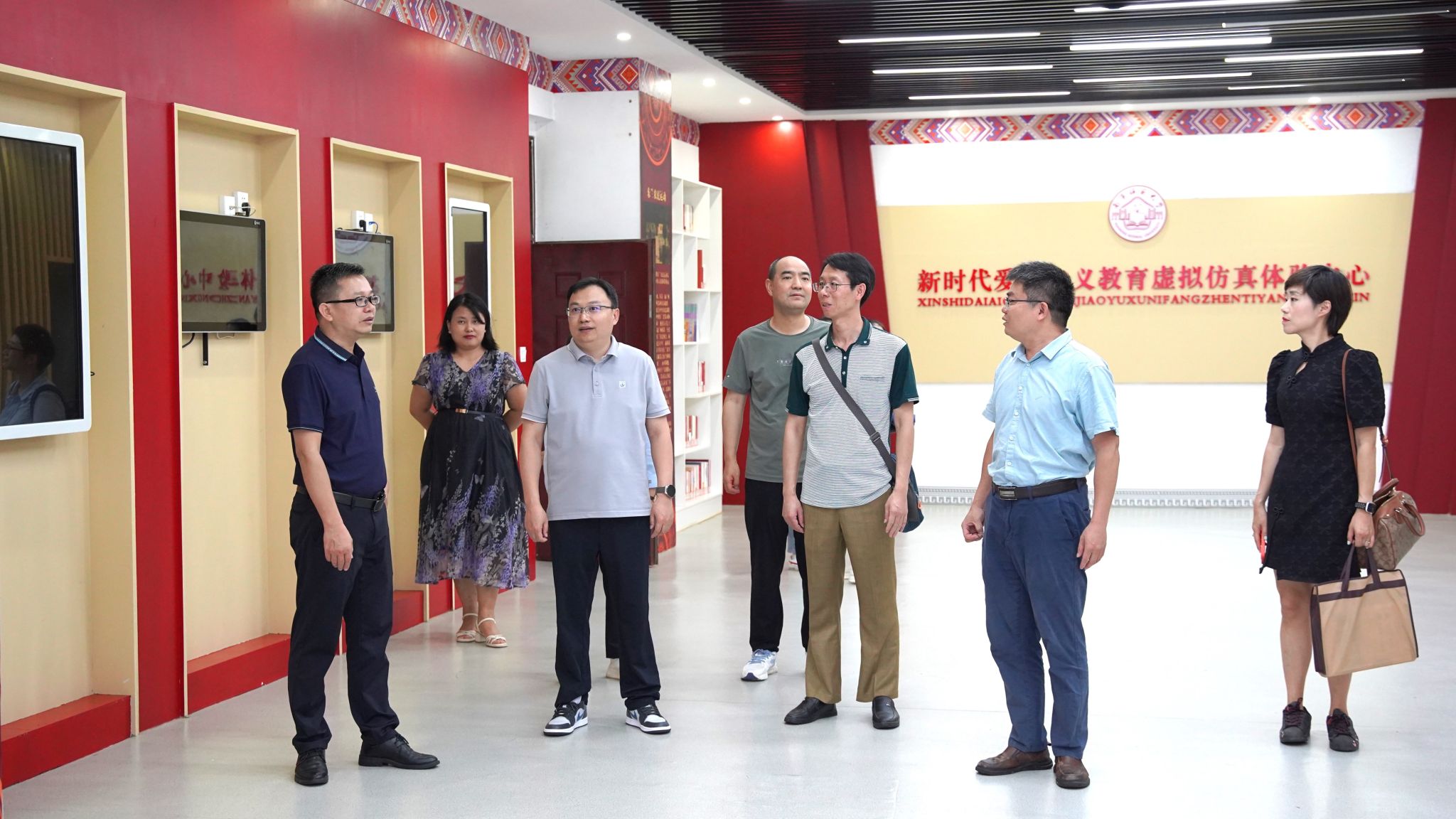 2024年6月18日下午,西安理工大学马克思主义学院党委副书记、副院长陈文林副教授一行赴马克思主义学院参观交流,马克思主义学院党委副书记黄志海、德法教研室主任杨强、实践教研室主任刘艳闽等热情接待,并陪同参观了马克思主义学院党史育人画廊、马克思主义理论教育广场、湘江战役虚拟仿真实验中心、马克思主义经典著作阅读室、科学社会主义发展史教育馆、新媒体实验室等场所和设施,了解了马克思主义学院国家级教学成果奖及师范生教学技能竞赛方面所获得的成果。
