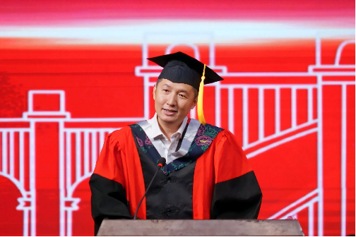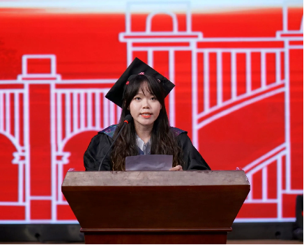 2020级地科陶班李文婷同学作为本科生发言。她表达了对完美(中国)学院的深情厚谊,讲述了求学期间的收获和感悟,感念真挚的同窗情谊,祝愿所有毕业生继续发扬学院“明德至善 格物致知”精神,践行地理教育使命,不忘初心,砥砺前行,迎接更加精彩的未来!