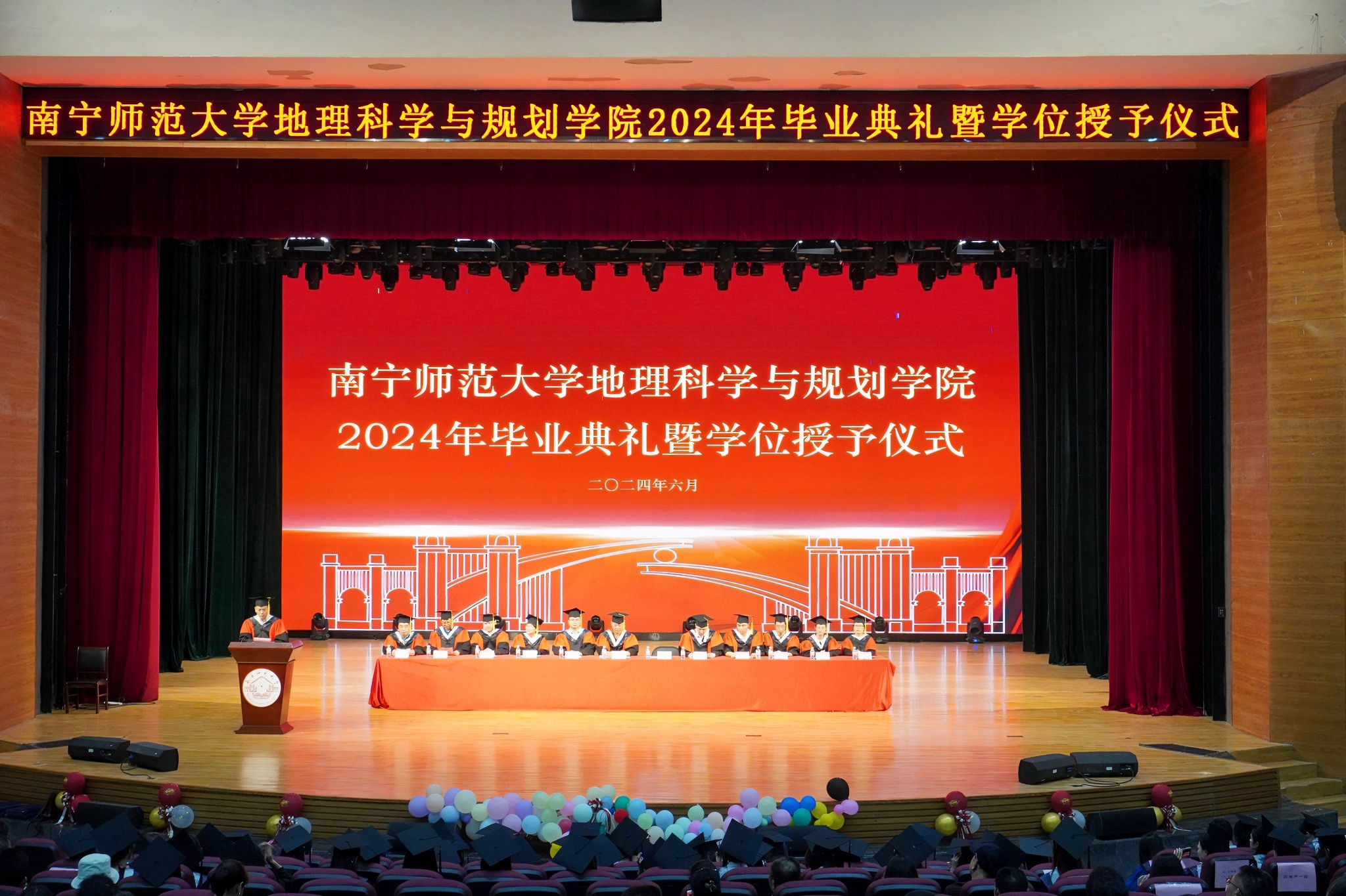 6月28日下午,地理科学与规划学院在武鸣校区1号报告厅举行2024年毕业典礼暨学位授予仪式。学院党政领导班子成员、学位评定分委员会委员、系主任、毕业班班主任、学工办辅导员和2024届毕业生共同参加本次典礼。