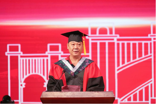 学院院长卢远在致辞中寄语毕业生们要明德至善、格物致知,注重道德修养,明辨是非,求真笃实,找准未来人生的定位和方向。要朝乾夕惕,保持专业学习初心,努力为理想努力拼搏。要锐意创新、敢为人先,积极承担社会责任,紧跟时代发展步伐,努力掌握真才实学,将个人命运和国家命运结合起来,为国家为民族为社会作出应有贡献。